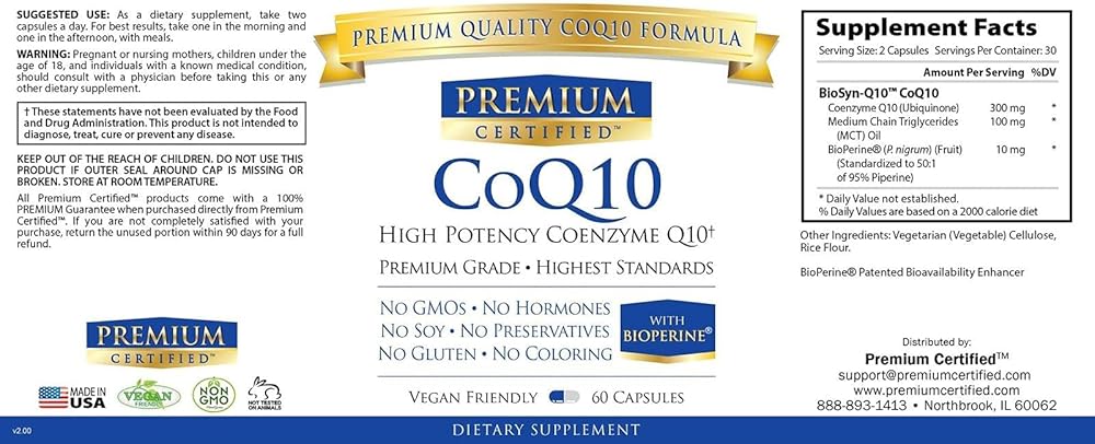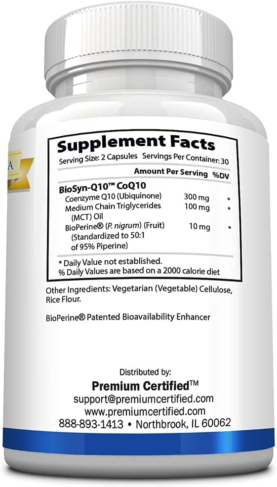 Premium Certified CoQ10 provides a high-absorption CoQ10 to help promote heart and overall health. The inclusion of MCT Oil and BioPerine increases absorption, making it a fast-acting solution.