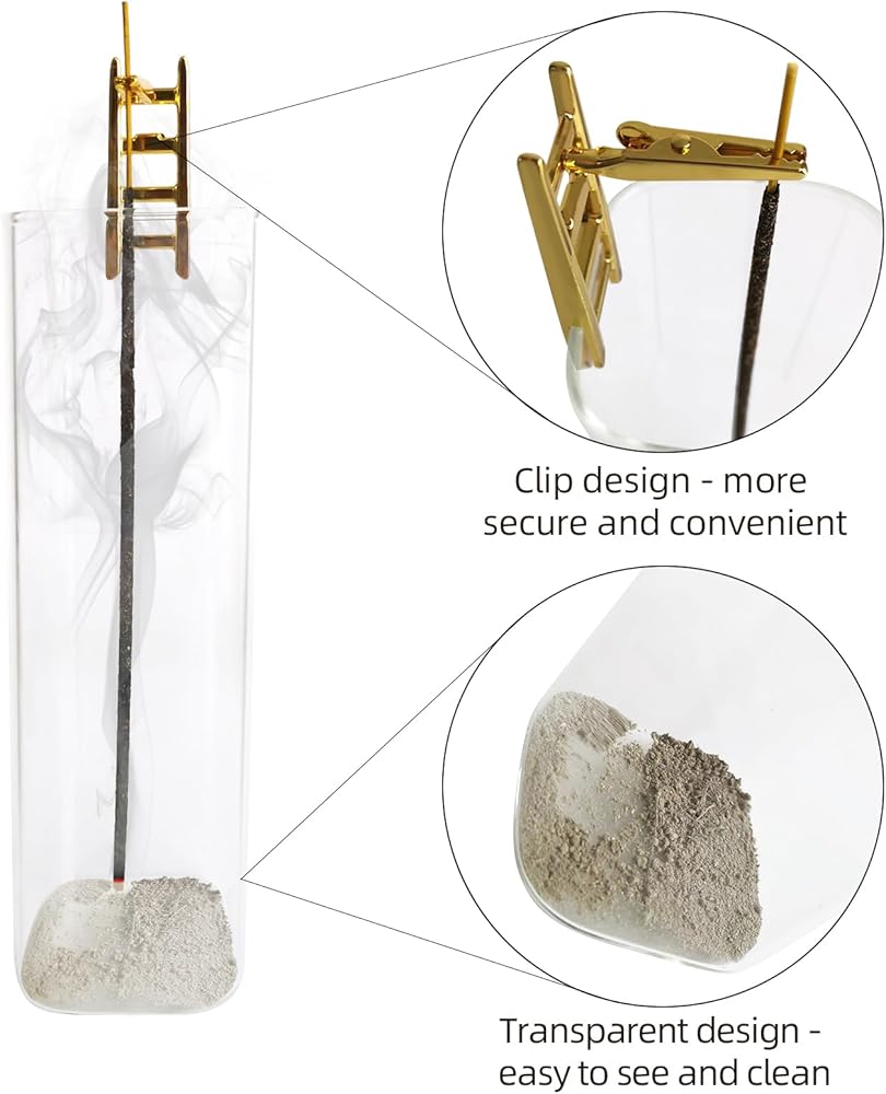 • 【حامل بخور زجاجي بتصميم فريد من نوعه】 تم تصميم هذه المجموعة على يد أحد خبراء جماليات الحياة في أوروبا الغربية. طريقة الحرق تسمح لرماد البخور بالسقوط عموديًا، ويمنع الزجاج جميع تيارات الهواء من نفخ الرماد بعيدًا.