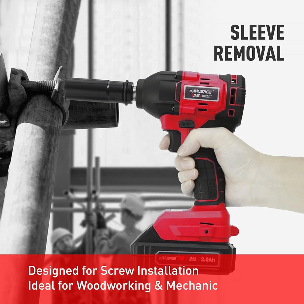 • 【محرك قوي】أهم شيء بالنسبة للأدوات الكهربائية هو امتلاك مولد قوي. محرك مانوسيج القوي بدون فرش 20 فولت بحد أقصى 350 نيوتن متر، ويمكن أن تصل السرعة القصوى إلى 3000 دورة في الدقيقة، مما يسمح لك بتوفير الوقت والجهد أثناء العمل.
