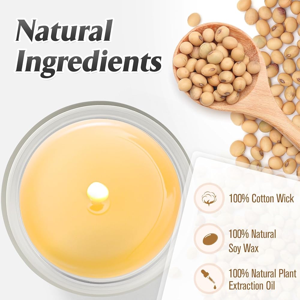 شمع الصويا الطبيعي: الشمعة مصبوبة يدويًا بشمع الصويا بنسبة 100%، وتسمح بحرق آمن ونظيف وطويل الأمد - حتى 50 ساعة تقريبًا. يضمن الفتيل القطني المركزي ارتفاعًا ثابتًا للهب، وحرقًا متساويًا وبدون دخان. إن الفعل البسيط المتمثل في وضع شمعة الصويا على رف الكتب أو الطاولة أو المنضدة يحول على الفور غرفة عادية خالية من الحياة إلى ملاذ مريح للرعاية الذاتية.
