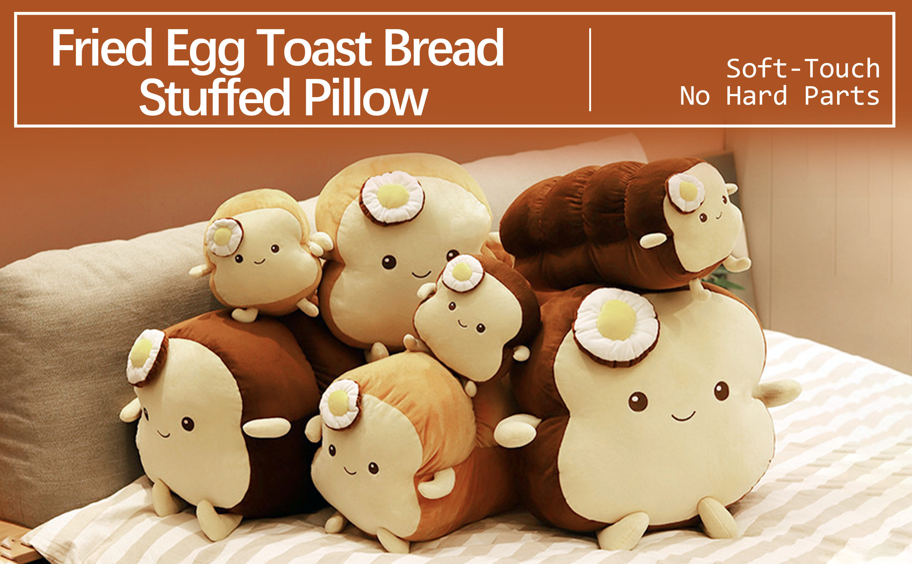 وسادة محشوة بخبز التوست بالبيض المقلي: هذه وسادة ذات طراز جديد. يتم إضافة بيضة مقلية لطيفة إلى شرائح الخبز، كتطابق رائع لوجبة الإفطار، وهو الرفيق الدائم الذي لن يصبح قديمًا. تتميز قطيفة الخبز المحمص بجسم كامل ناعم الملمس وتعبير وجه مبتسم، كما أن التعبير عن ألعاب الخبز المحشوة حقيقي جدًا ومعدي.