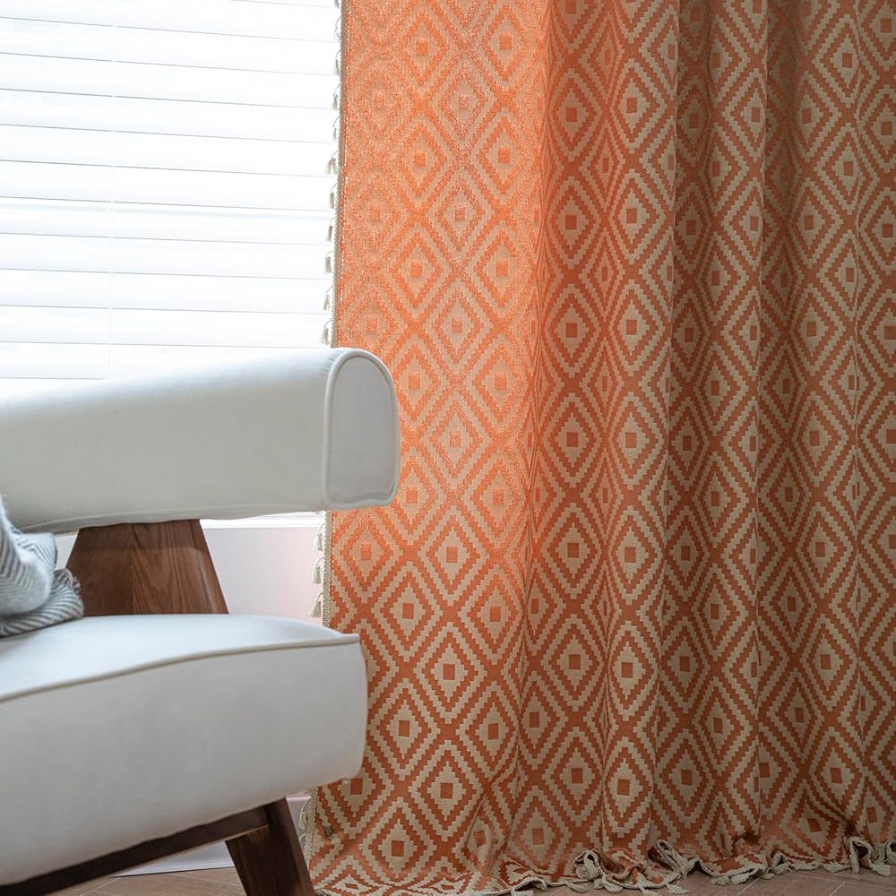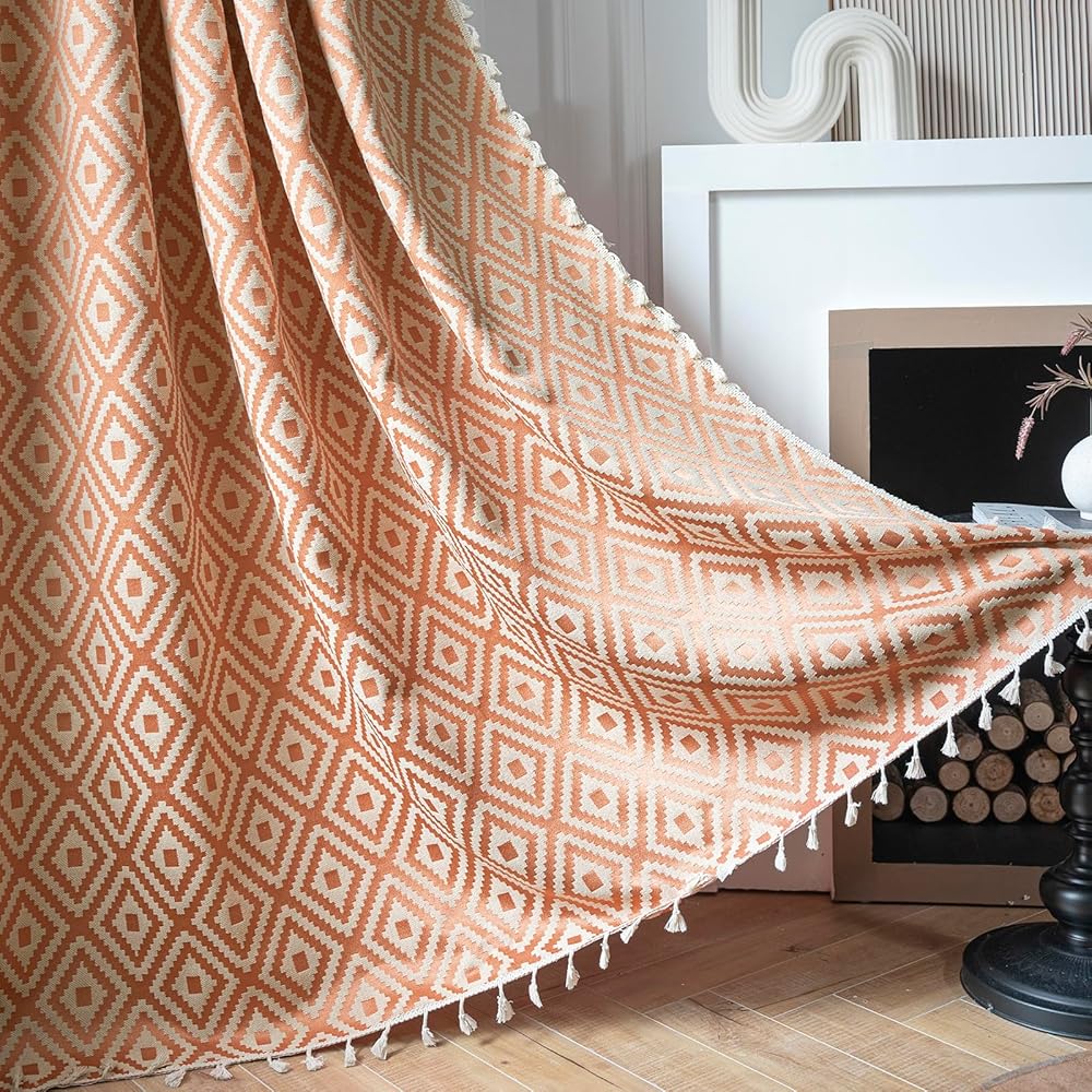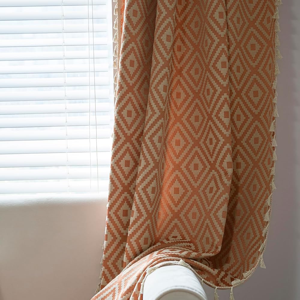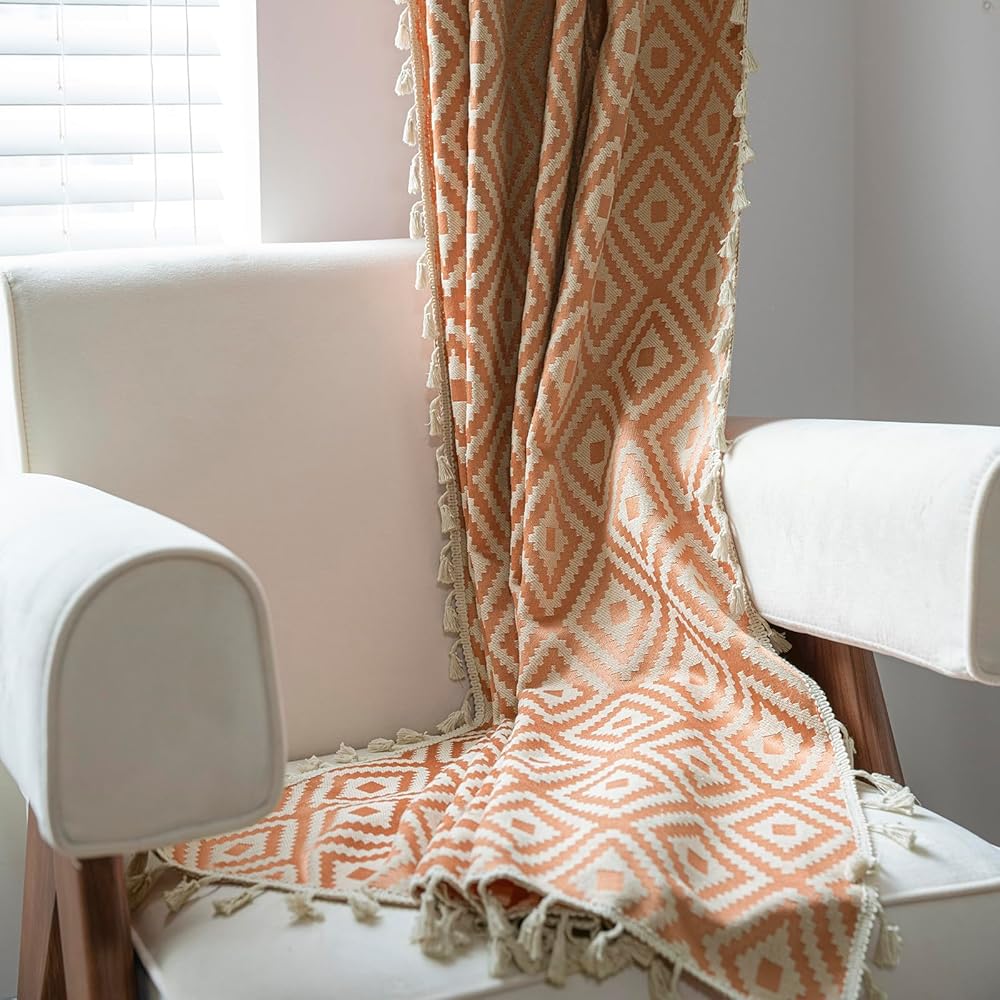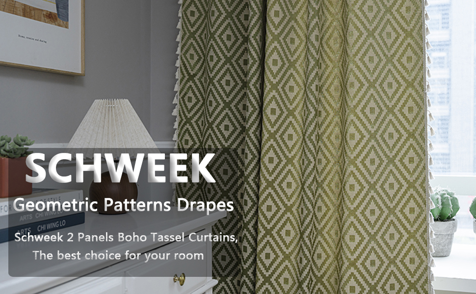 【ستائر بوهو】تتميز ستائر Schweek boho بتصميم بوهيمي مع شرابات بوهيمية. نمط الجاكار المطرز الهندسي أنيق وجميل، هذه الستائر تتناسب تمامًا مع ديكور غرفة المزرعة الحديثة أو غرفة ذات طراز بوهيمي، مما يضيف إلى سحر غرفتك.