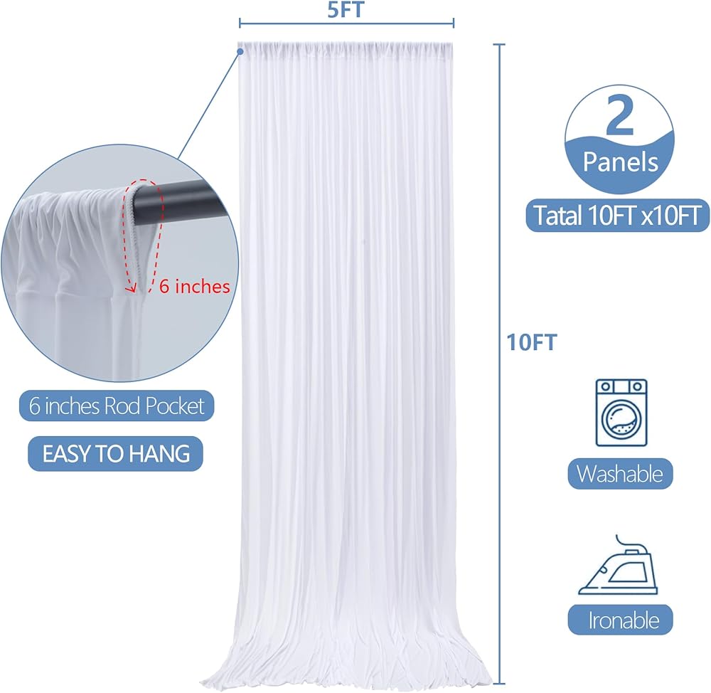 💗خلفية بيضاء قابلة لإعادة الاستخدام - تضمن ألواح الستائر الخلفية البيضاء هذه متانة استثنائية استخدامًا طويل الأمد. يمكن غسلها وإعادة استخدامها. كما أن الستارة الطبيعية الخالية من التجاعيد تخفي أي تشتيت الانتباه، مما يحافظ على جماليات الحفلة وخصوصيتك.