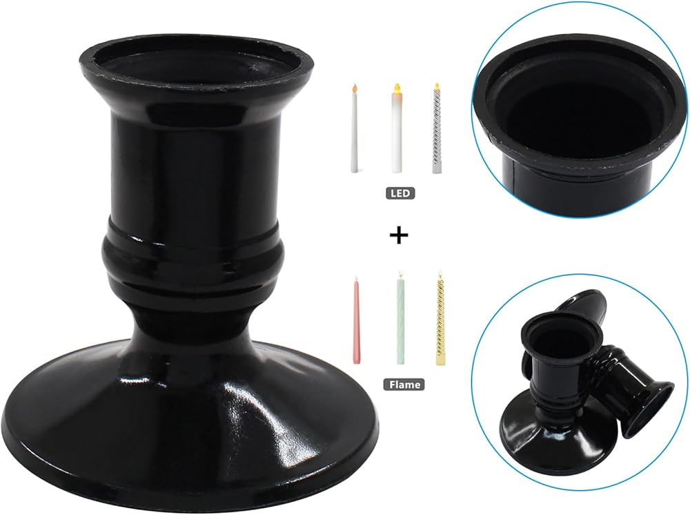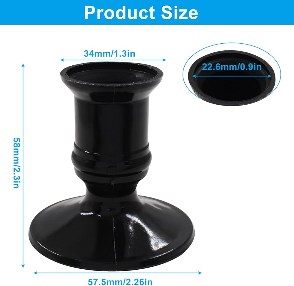 【Product Size】 Candle Taper Holder Inner Diameter: 7/8inch (22.4mm); Depth: 1.4inch (36mm); Total Height: 2.28inch (58mm). Can hold pillar candles, taper candles, flameless LED candles and other candles.