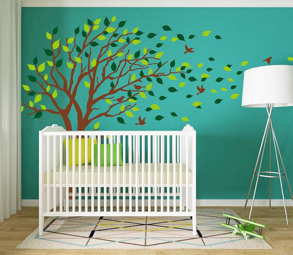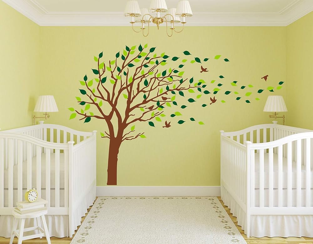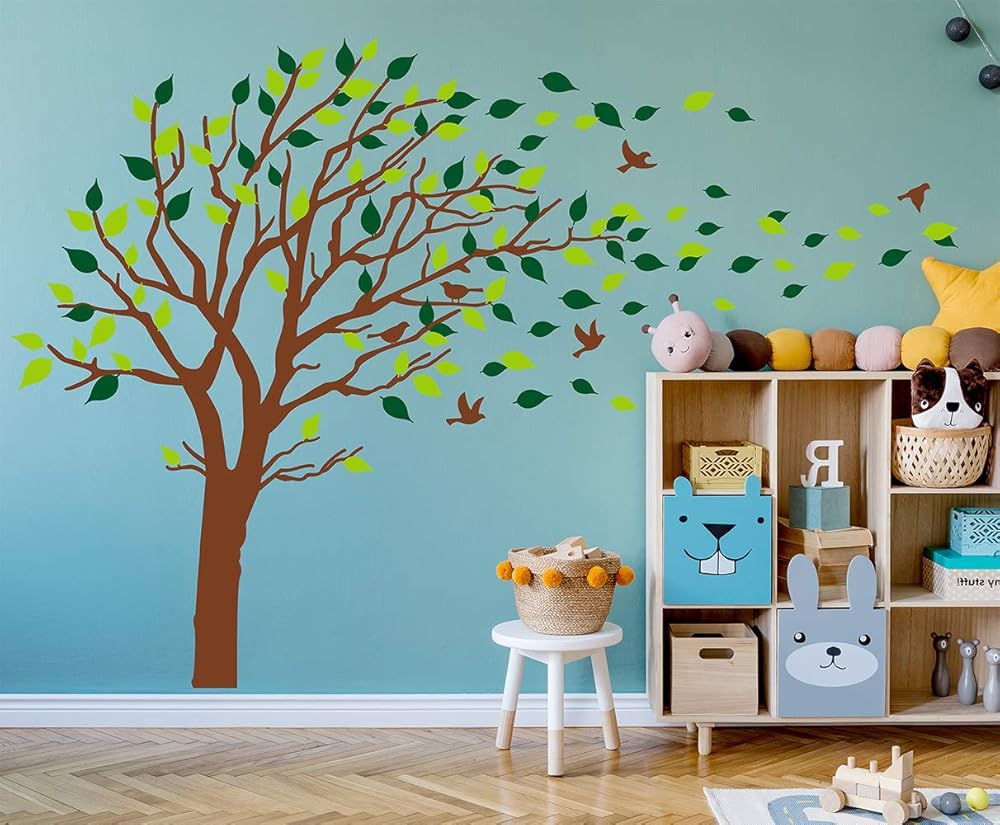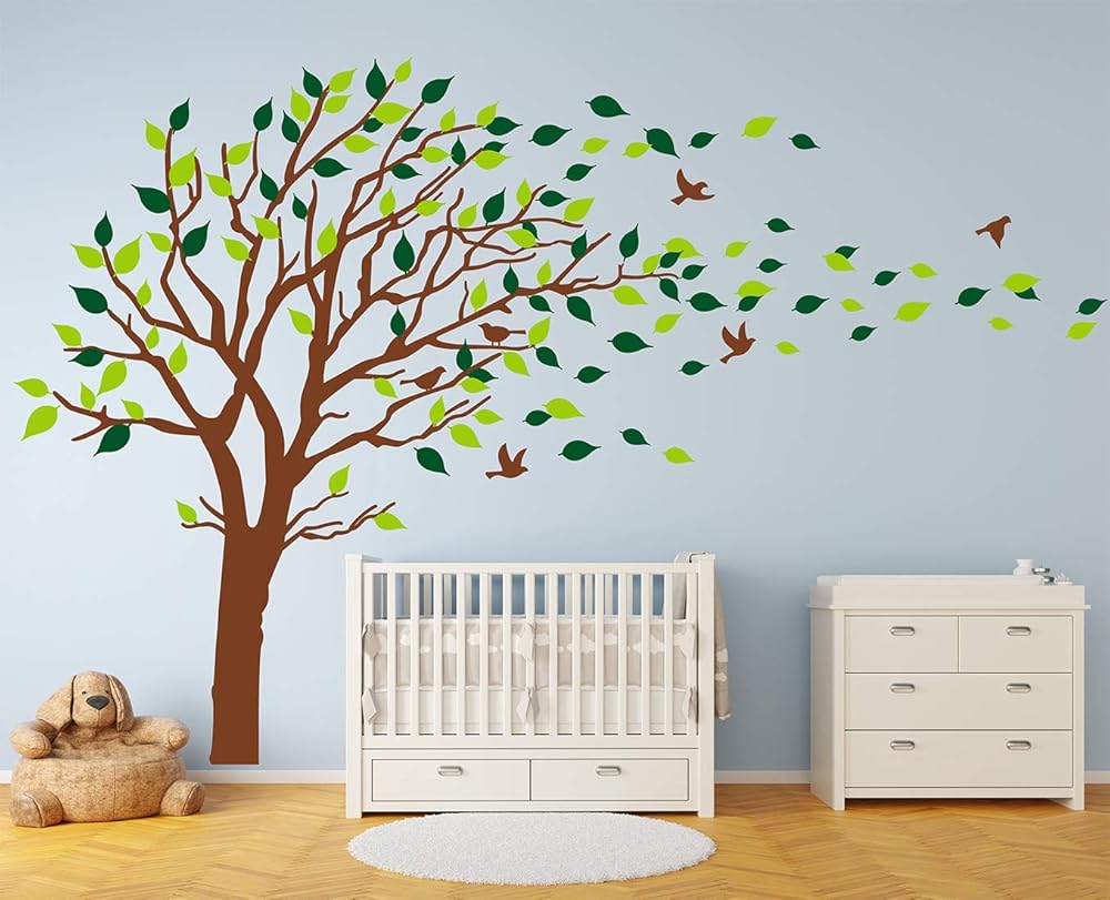 شجرة تهب في الرياح شجرة جدار الشارات الجدار ملصق الفينيل الفن غرف الاطفال في سن المراهقة الفتيات الفتيان خلفية الجداريات ملصق ملصقات الحائط ديكور الحضانة الشارات (8337 + براون)