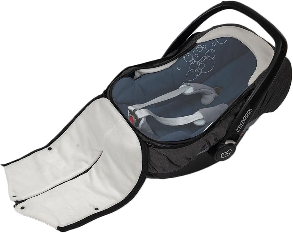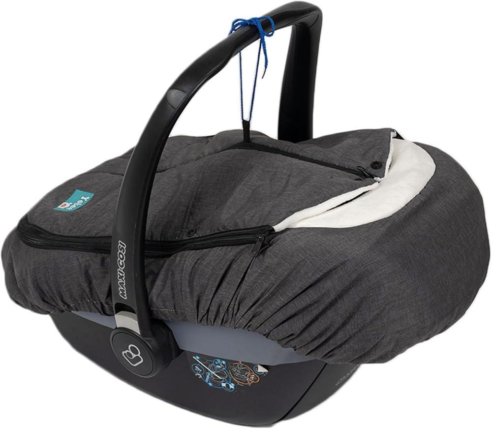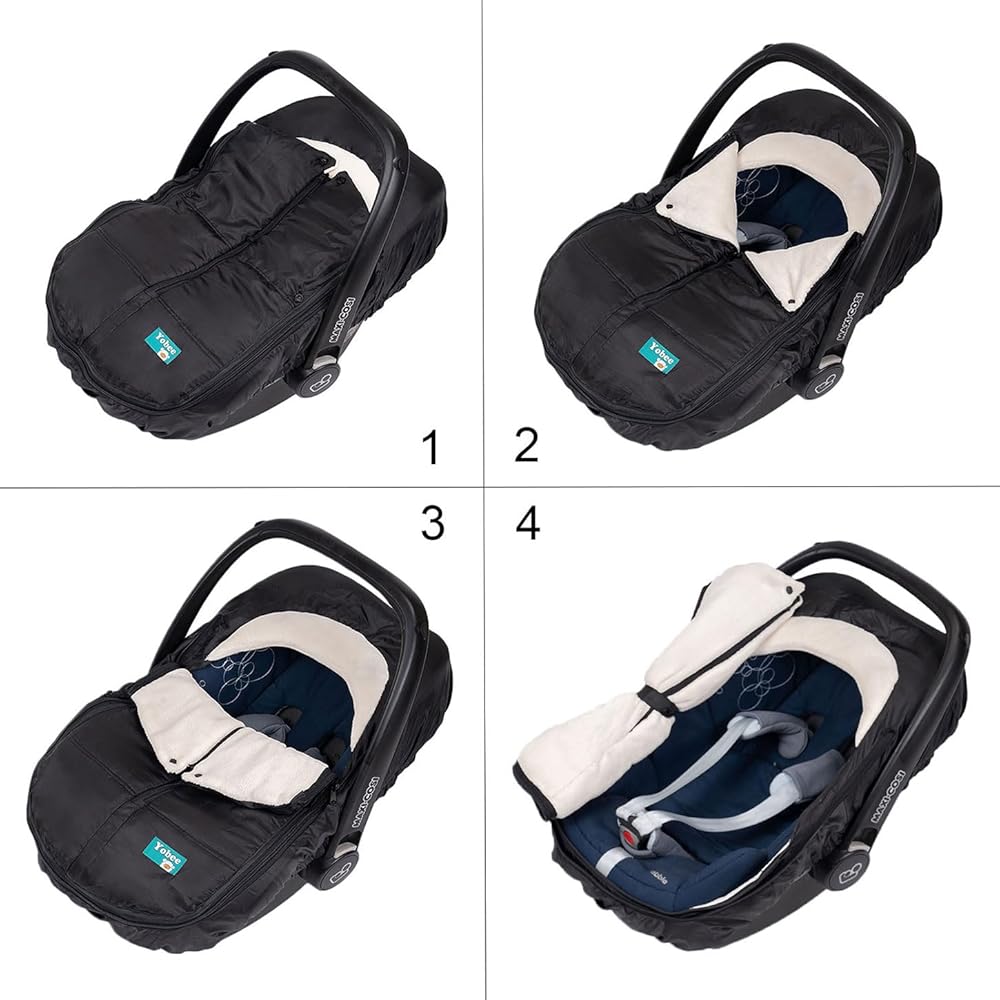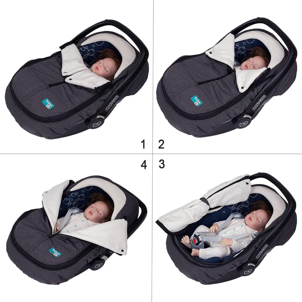 غطاء مقعد السيارة عالي الأداء: الجزء الخارجي من النايلون الناعم المقاوم للطقس وبطانة مريحة من الصوف المرجاني الدافئ تحافظ على دفء طفلك وراحته في الطقس البارد.