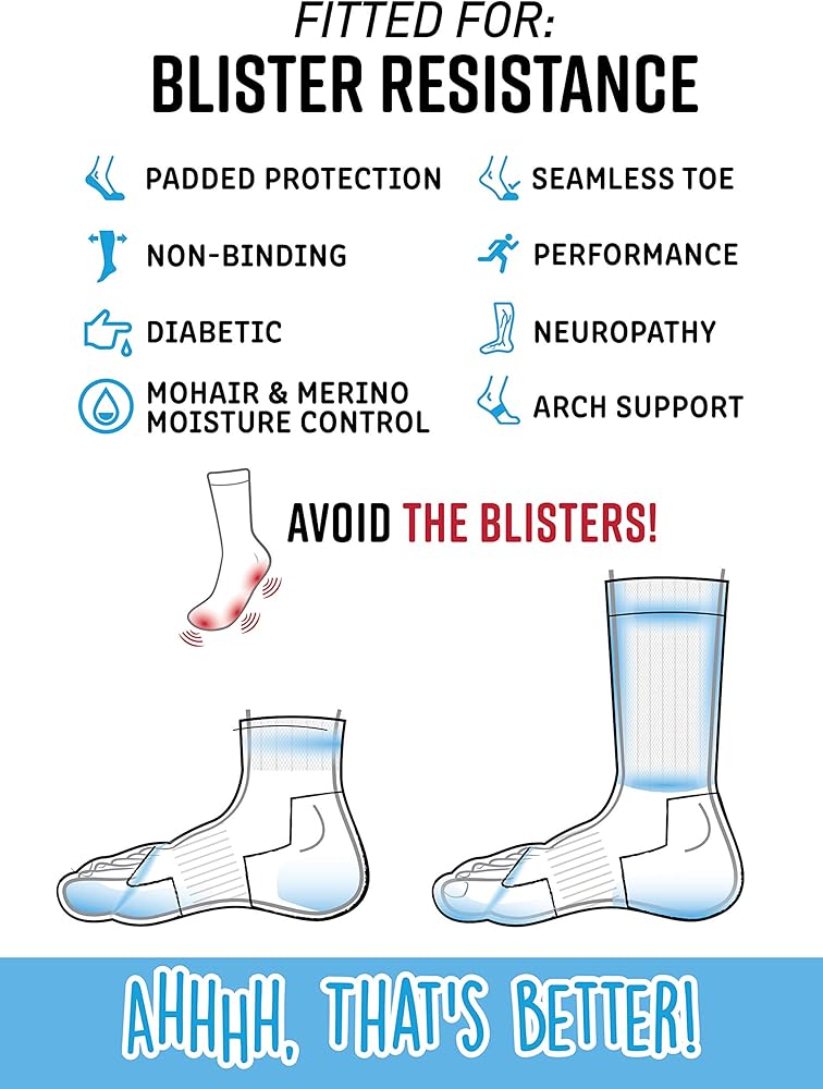 أداء بثقة: سواء كان ذلك الجورب للتنس أو كرة المخلل أو الأطواق أو الجري، فسوف تجرب أفضل ما في الجورب عالي الأداء المصنوع من ضروريات جورب لمرضى السكري. ثق بأن قدميك ستبقى جافة ومحمية بغض النظر عن مدة التمرين أو كثافته.