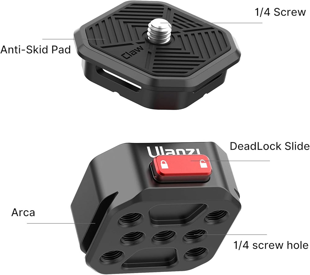 تسمح لك لوحة الفك السريع المخلب التي تم إنشاؤها في الأصل بواسطة ULANZI بالتحرير والإعداد بين الكاميرا/الهاتف الذكي/الحامل الثلاثي/المونوبود/المثبت/المنزلق بسرعة بدلاً من الشد.
