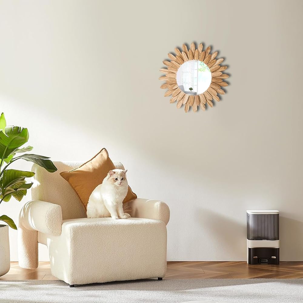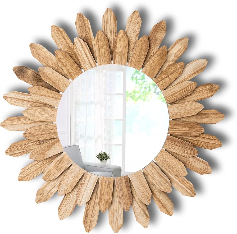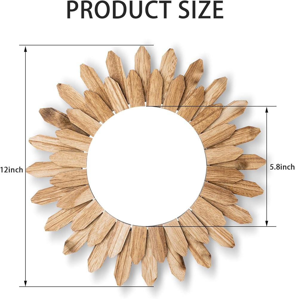 حجم المنتج: تتميز هذه المرايا المذهلة بإطار خشبي بقطر 12 انش ومرآة بقطر 5.8 انش يمكن تركيبها بسهولة على الحائط لإضافة لمسة أنيقة وفريدة من نوعها إلى مساحتك. تتوافق بشكل مثالي مع غرف المعيشة وغرف النوم ومناطق الطعام والمعارض والسلالم وحتى مناطق الحديقة. تتضمن العبوة مرآة حائط بوهيمية لشخص واحد + مسمار واحد لا يترك علامات + خطاف واحد.