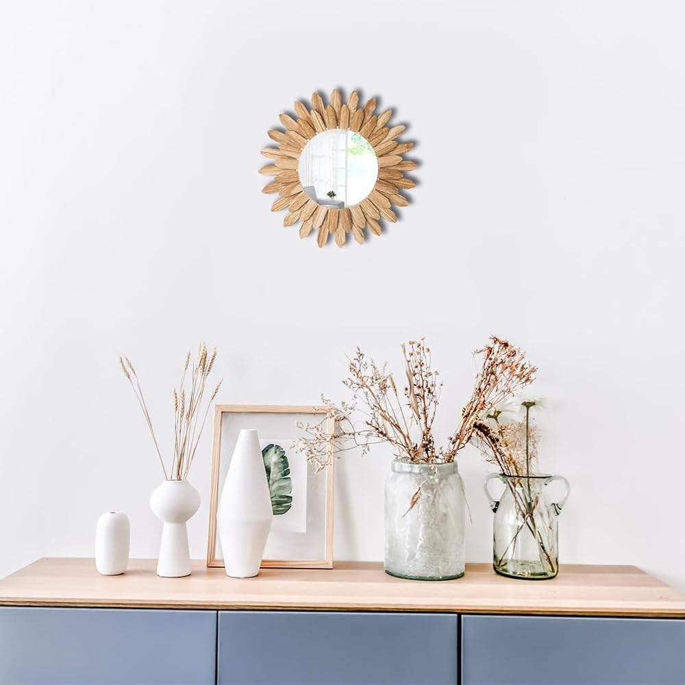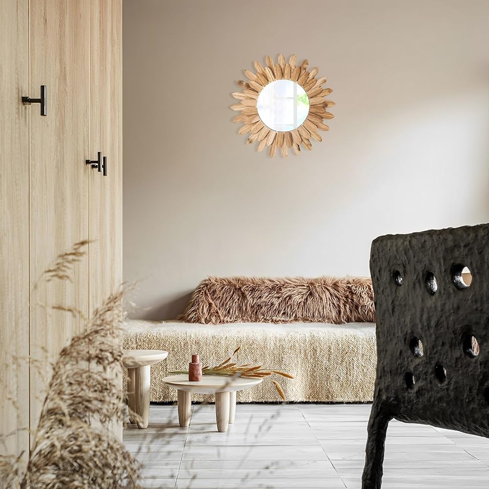 نمط بوهيمي: أضف لمسة فريدة إلى منزلك مع هذه المرايا ذات الطراز البوهيمي. كما أنها تمتزج بشكل جيد مع أنماط الديكور الحديثة والعتيقة والصناعية. إنها مثالية كقطع ديكور منزلي ويمكن وضعها في أي مساحة تقريبًا.