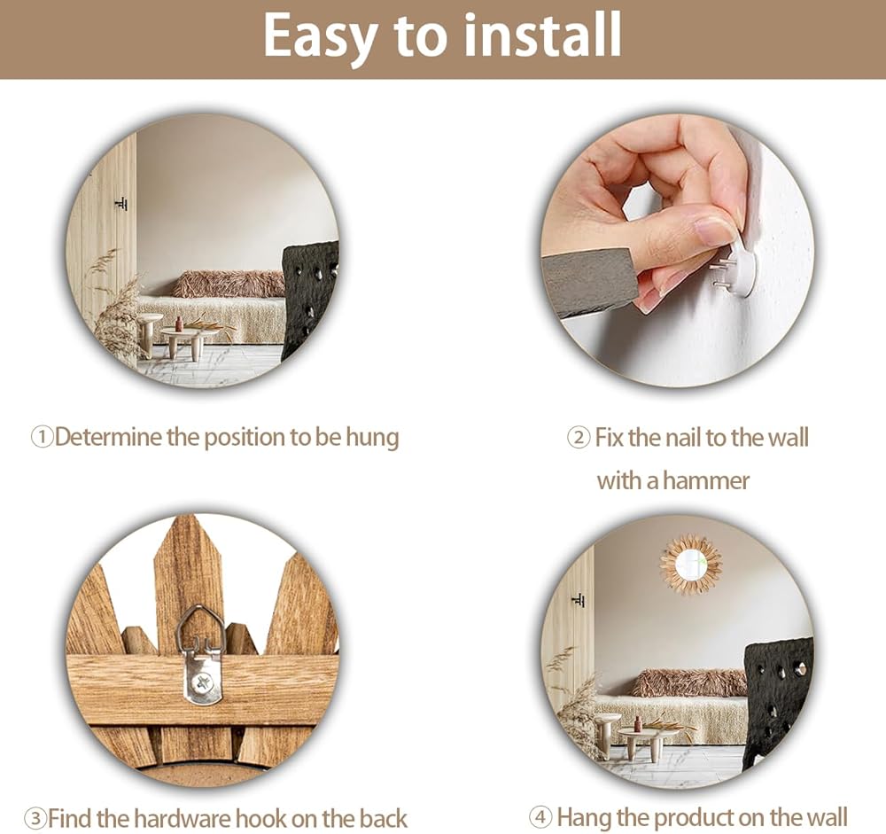 سهلة التركيب: تأتي مرايا الحائط الخشبية مع خطافات معدنية ونقدم خطافات لاصقة، مما يجعل التركيب سهلاً في بضع دقائق فقط.. خدمة ما بعد البيع نولي أهمية كبيرة لجودة المنتج وتجربة تسوق العملاء، إذا لم تلبي عملية الشراء توقعاتك، فيرجى إخبارنا وسنكون راضيين.