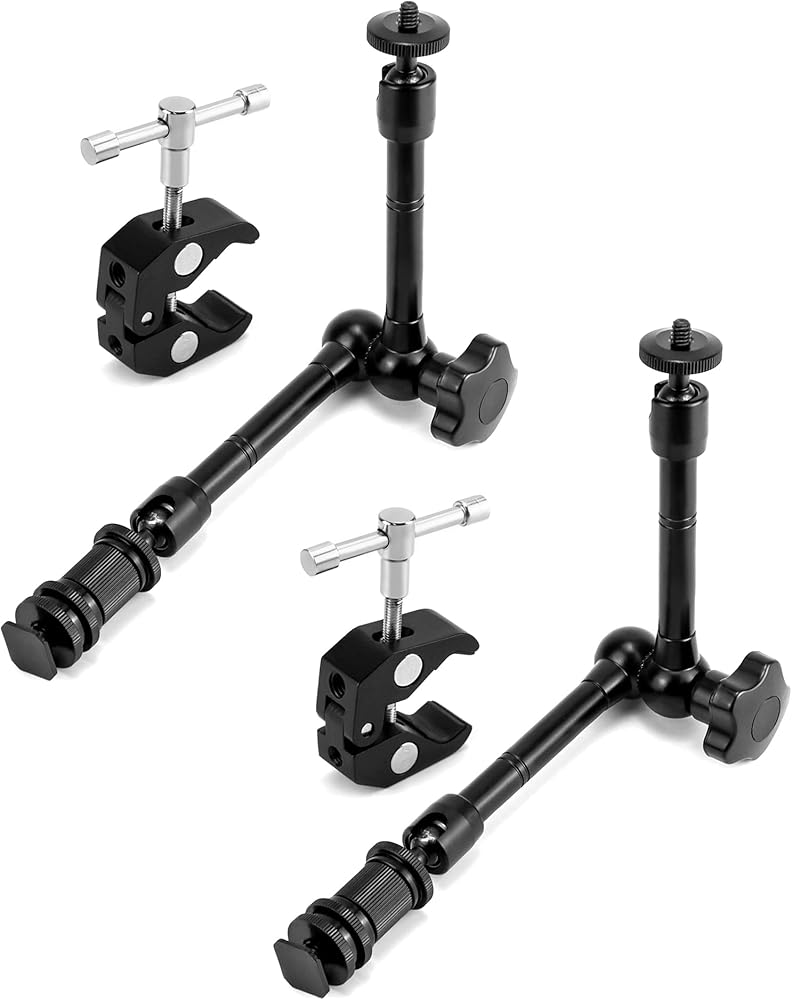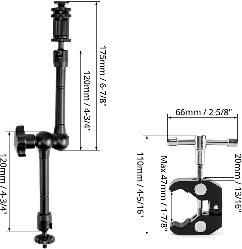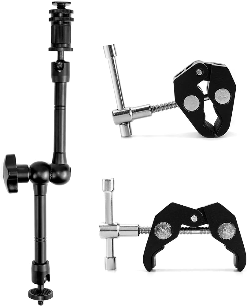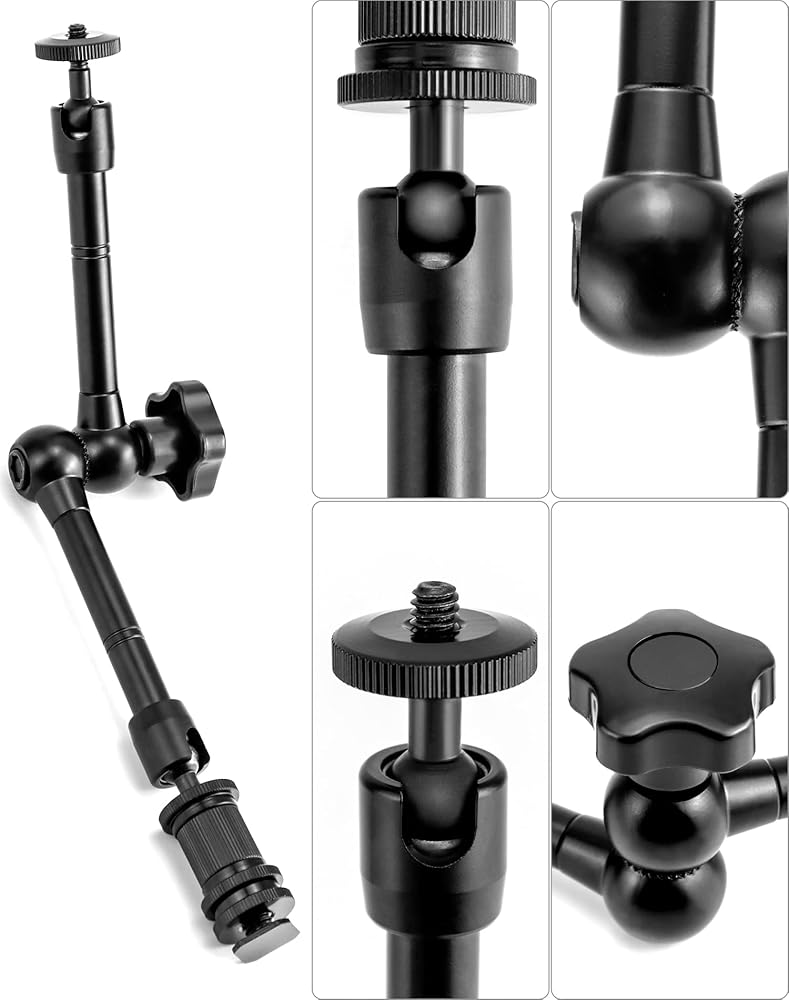 • توافق واسع: مزود بحامل للهاتف الخلوي ومحول تثبيت للكاميرا الرياضية، ويتوافق الذراع السحري مقاس 11 بوصة مع الأجهزة ذات الفتحات الملولبة مقاس 1/4 بوصة، مثل الفلاش، وأضواء الفيديو LED، والميكروفونات، والشاشات الحية، والأجهزة ذات الأحذية الباردة مثل حوامل الهواتف المحمولة وأقفاص الكاميرا.