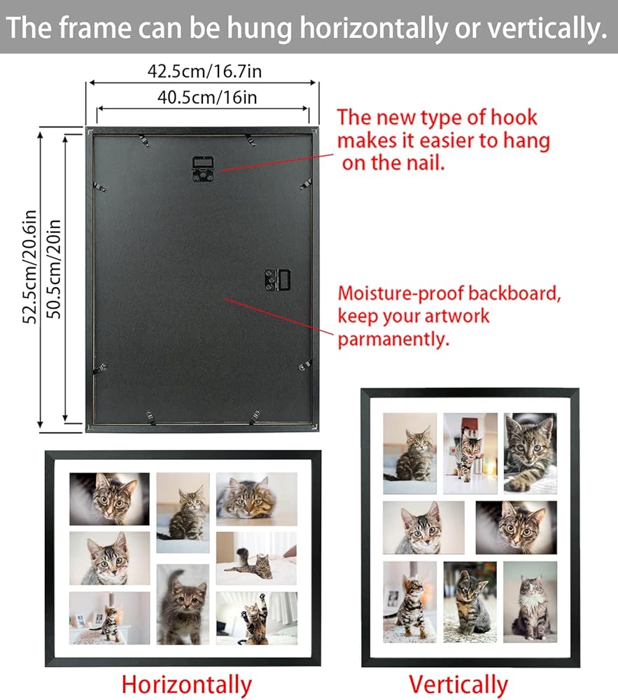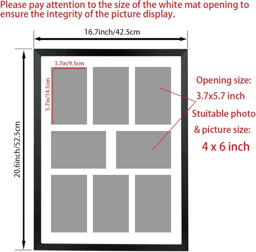 إطار صورة مجمعة LTYHHK مقاس 4 × 6 8 فتحات من الخشب الصلب، يعرض 8 فتحات مقاس 4 × 6 مع حصيرة أو 16 × 20 بوصة بدون حصيرة، إطارات صور مجمعة، إطار صورة عائلي أسود، مجموعة صور مجمعة متعددة (LMK05a)