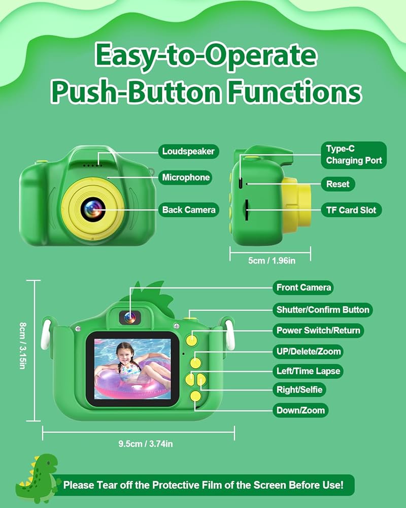 【بطاقة SD سعة 32 جيجابايت وبطارية ضخمة】 نقدم بطاقة SD صغيرة بسعة 32 جيجابايت لتخزين آلاف الصور وأطنان من مقاطع الفيديو، مما يضمن أن طفلك يلتقط أكبر عدد ممكن من اللحظات الرائعة. مع بطارية مدمجة بقوة 600 مللي أمبير في الساعة، يمكن لطفلك الصغير اللعب لمدة 2-3 ساعات بدون توقف بعد الشحن الكامل.