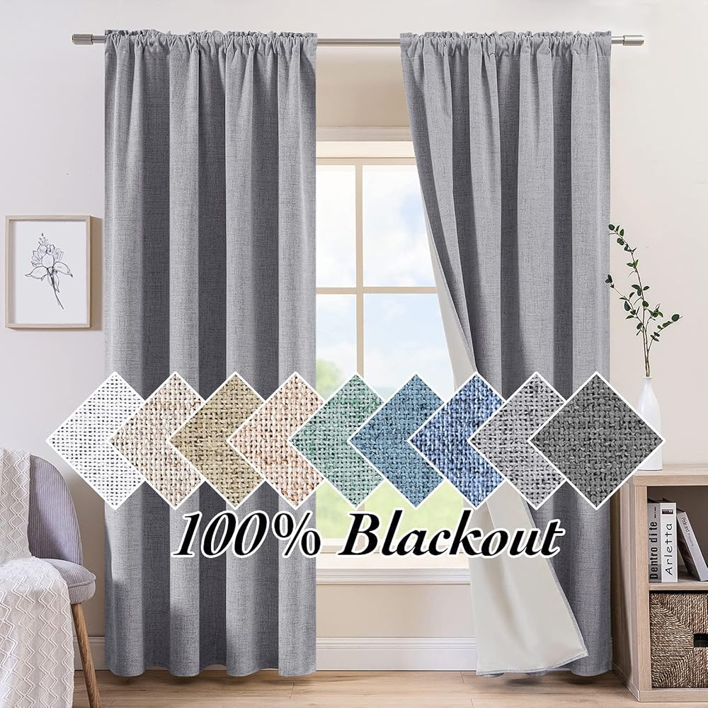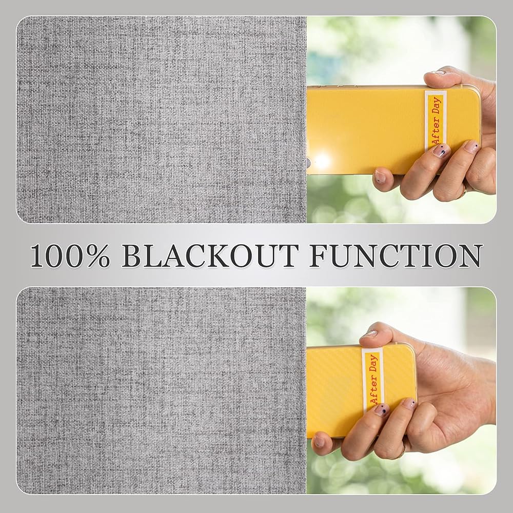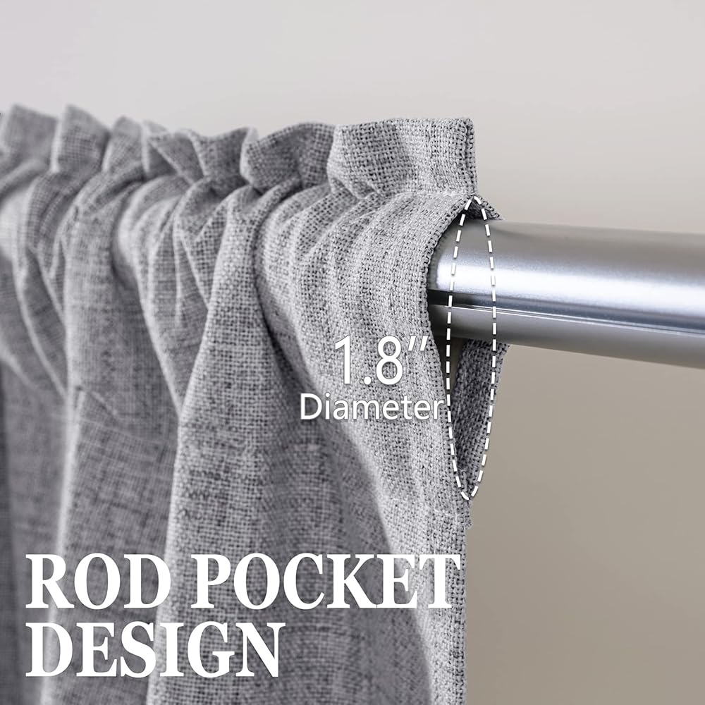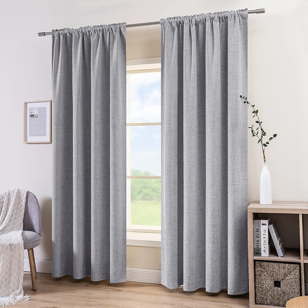 Miulee 100 ٪ الستائر تعتيم 108 بوصات من الكتان الطويل الغرفة الغامق الستائر الجيب القضيب المعزول الحراري ، 2 لوحات ، 52W × 108L ، رمادي