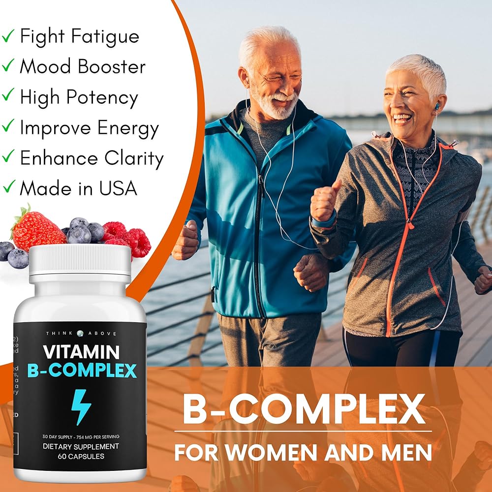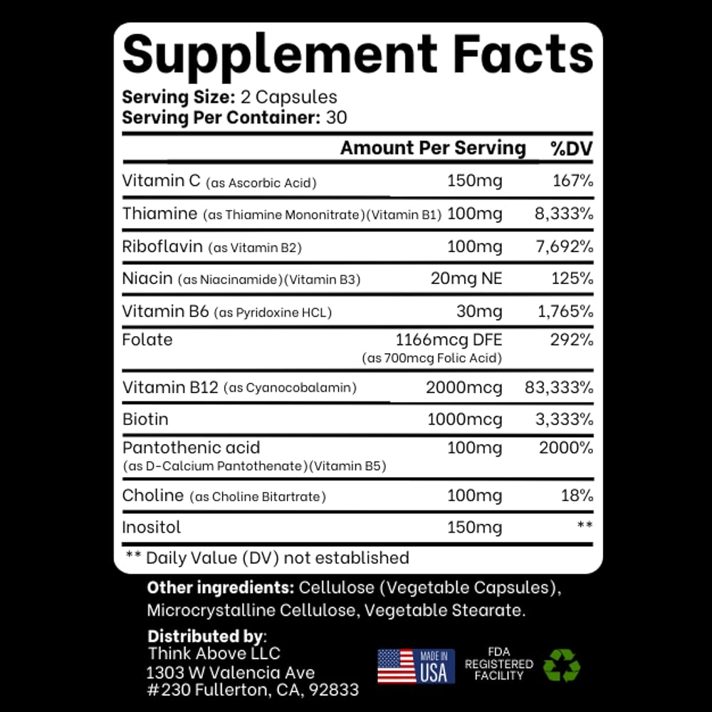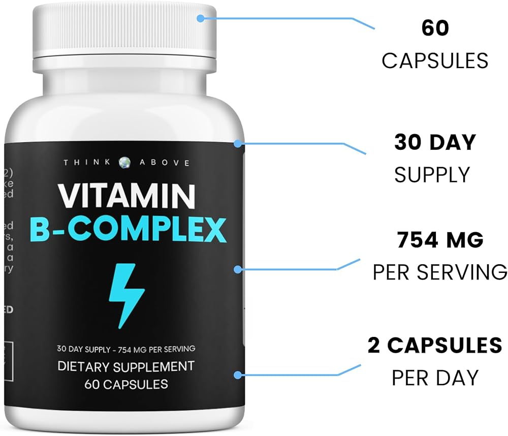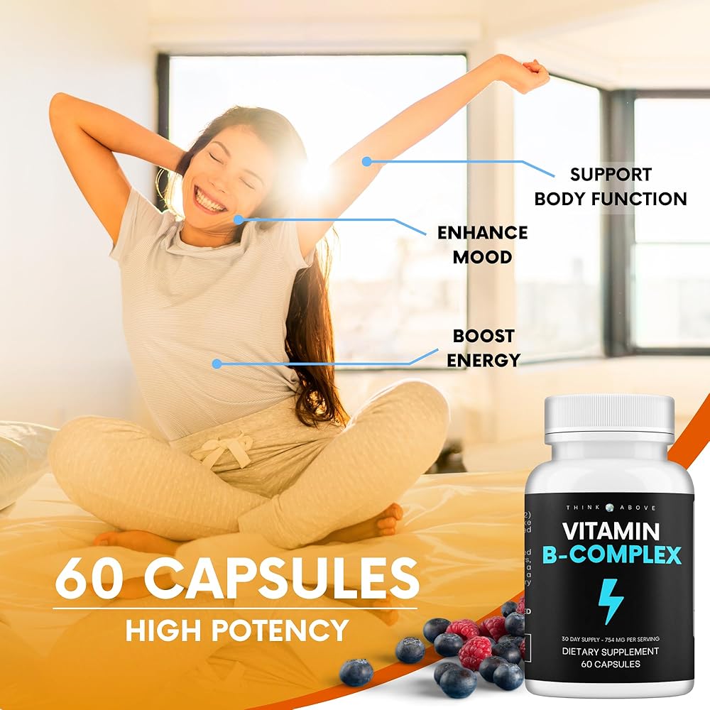 فكر في الفيتامينات المعقدة ب للرجال والنساء | 60 قطعة عالية الفعالية - تدعم الطاقة والمزاج ووضوح تعب الدماغ والتركيز - *8 فيتامينات ب - مكمل مركب فيتامين ب