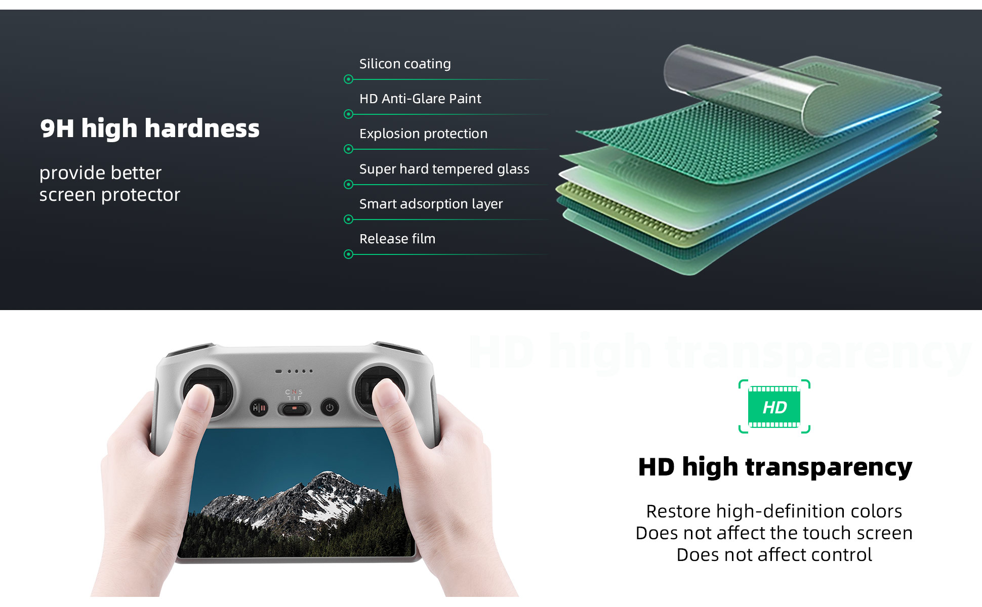 - Anti-scratch, explosion-proof screen, protect your DJI MINI 3 Pro DJI RC screen.