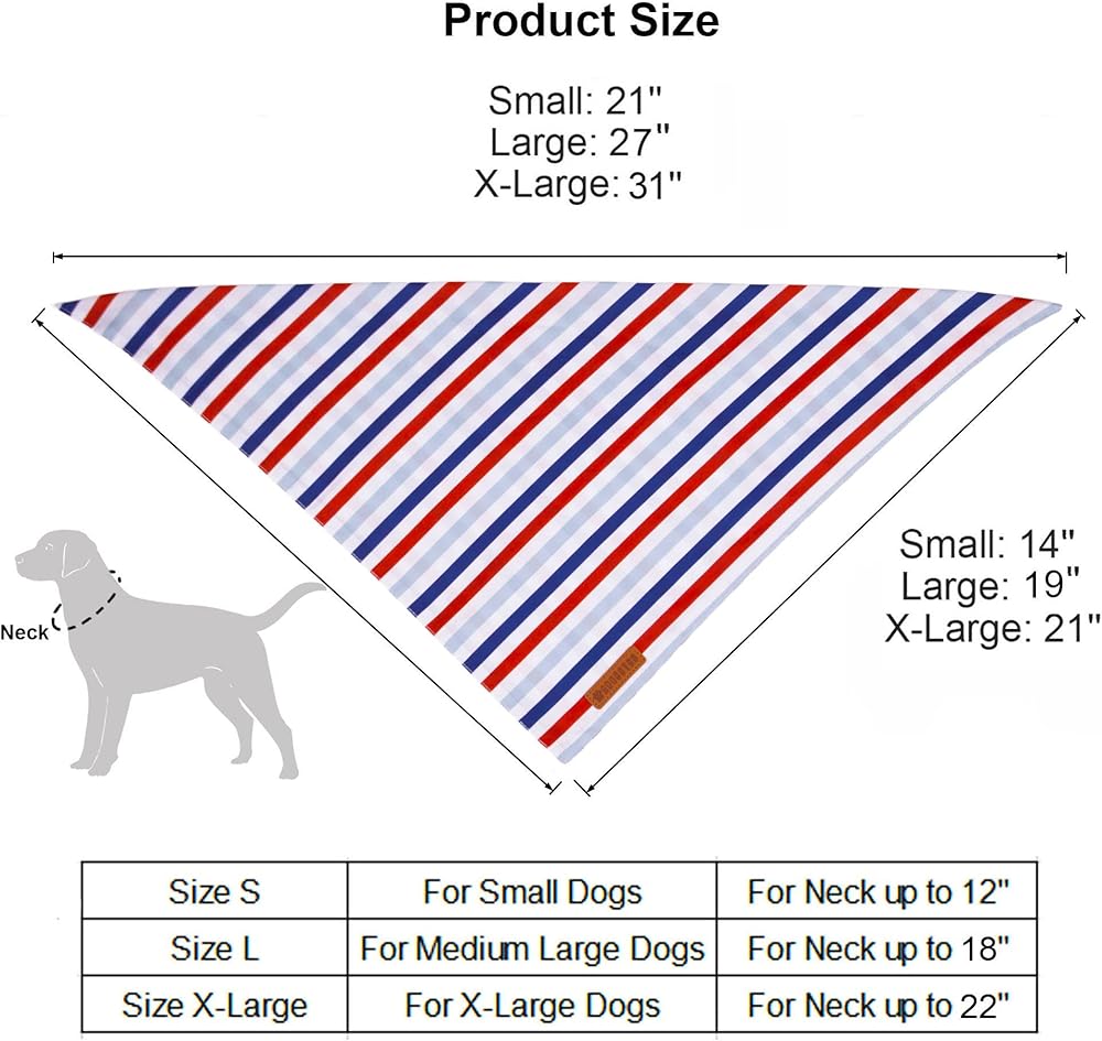 Multiple Size: Small fits necks up to 12'', Large fits necks up to 18'', X-Large fits necks up to 22''. 3 size for choose, you can find a suitable size dog bandana for almost all breeds. Please measure the size of your pet and leave room to tie knot.