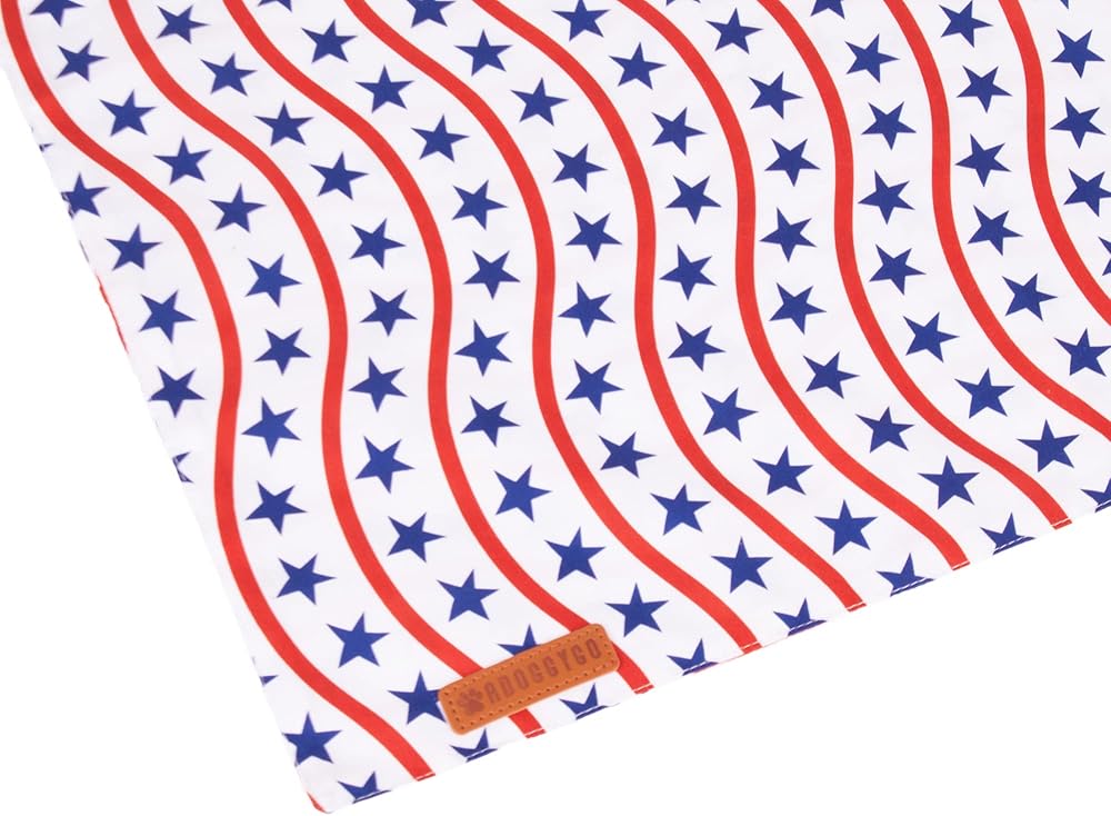 American Flag Dog Bandanas: Designed with white red blue color, classic stripe and star pattern, it show the spirit of Independence Day, you'll enjoy Independence Day with your dog.