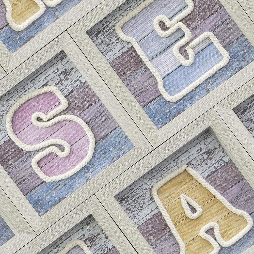 لوحة فنية جدارية على البحر من Rusticl: شكل حبل قطني بيج متصل بظهر ساحلي مع إطار رمادي ريفي مثالي لموضوعات الديكور الساحلي