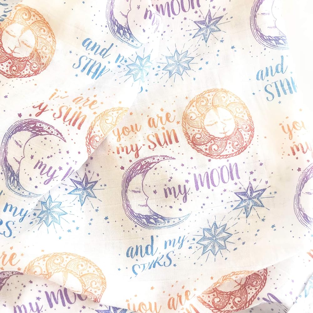 التقميط هو أفضل طريقة للف طفلك حديث الولادة. لا يهدئ الأطفال ويهدئهم فحسب، بل يساعدهم أيضًا على النوم لفترة أطول. بطانيات لف اين بيبي الموسلين مصنوعة من الخيزران والقطن مع طباعة الشمس والقمر والنجوم الملونة - نمط المصمم الأصلي.