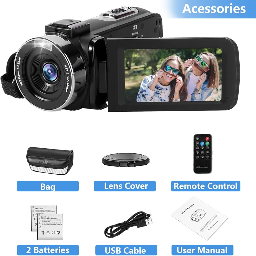 【High Quality 1080P Full HD Camcorder】 24MP and 1080P 30FPS together can make sure you capture high quality pictures and videos with this video camera easily. And the 3 inch 270 degrees rotation IPS screen allows you to shoot beautiful scenes and catch more amazing moment of your surroundings. This is a great vlogging camera for amateurs. It also supports SD card up to 64GB (not included).