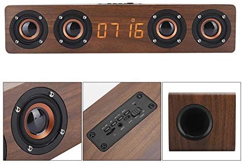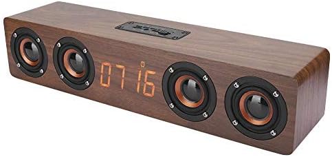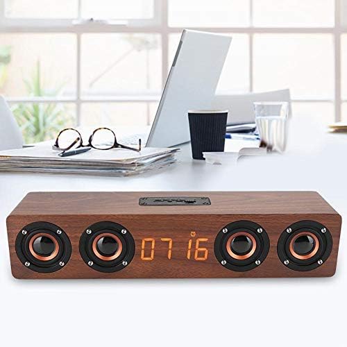 مكبر صوت خشبي ستيريو محمول من ايبوكسر، مكبر صوت بلوتوث 20 واط، تاثير باس قابل لاعادة الشحن، مع شاشة رقمية LED، ساعة منبه وراديو اف ام، للمنزل والسفر والحفلات
