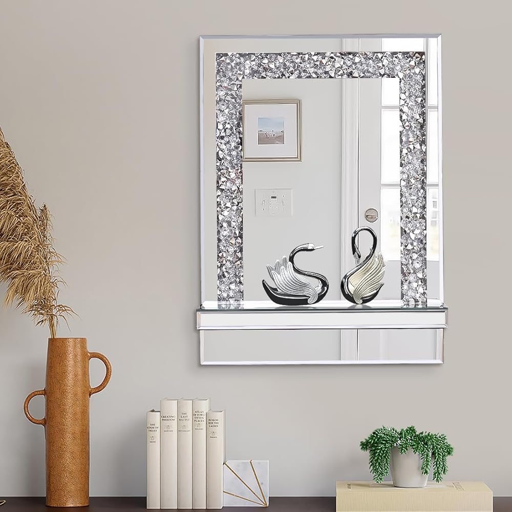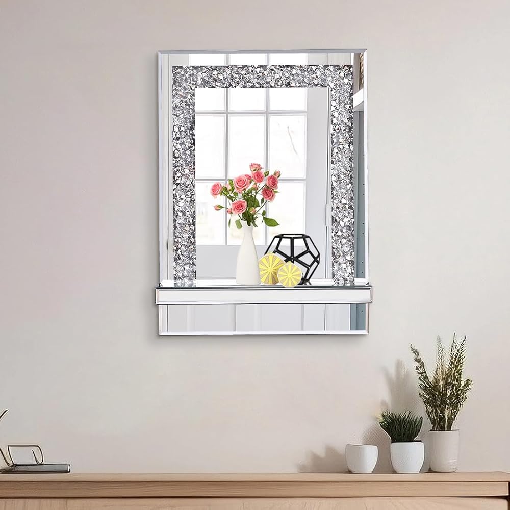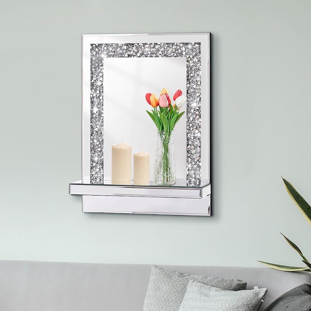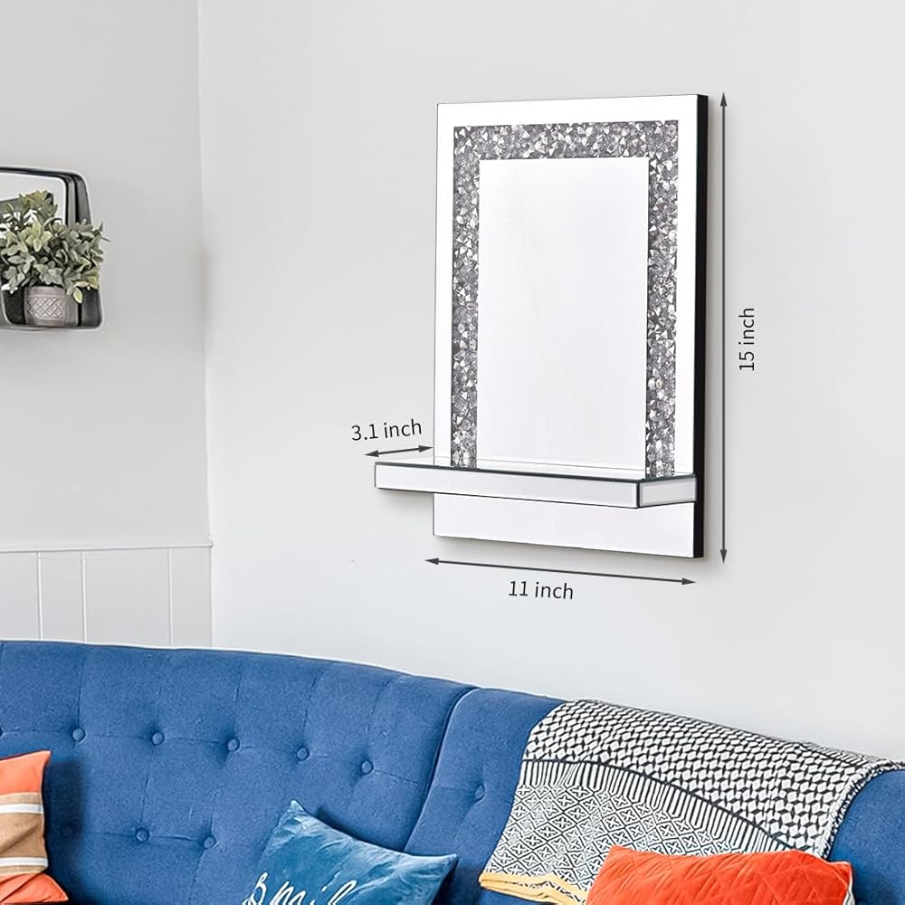 المقاس: مرآة تزيينية من الألماس المطحون بمقاس 11 × 15 × 3.6 بوصة، عبوة من قطعتين. إنها مرآة تزيين جدارية جميلة للمنزل.