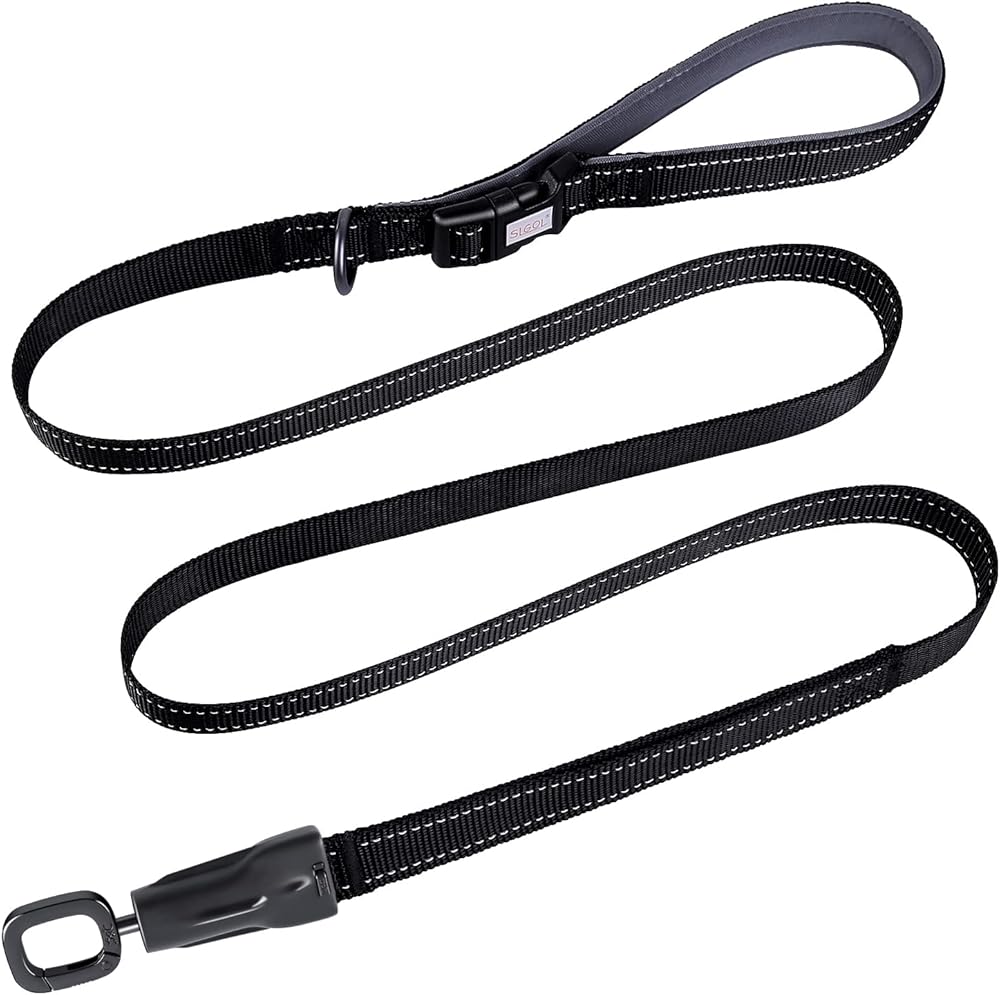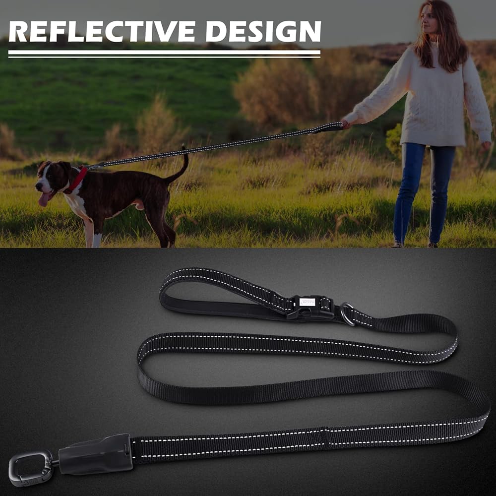 Multifunctional Heavy Duty Dog Leash SLGOL dog leash is sched with bright reflective threads which will keep you both safe and visible on your late-evening walks. D ring at the end of the handle could be used to hang accessories, like dog bowl and poo bag.Made of durable nylon rope, nearly 2X thicker and stronger than standard dog leashes, can withstand the pull of large dogs up to 200 lbs, can be used a training leash for large medium dogs.
