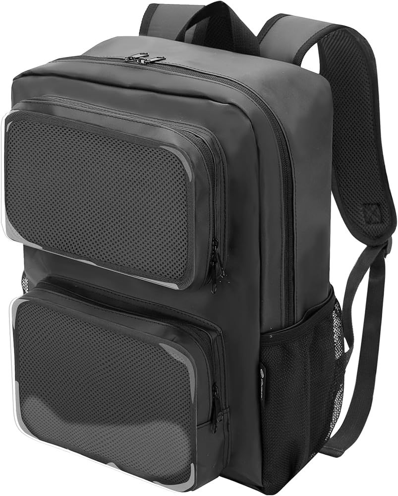 حقيبة ظهر متينة: مصنوعة من مادة البوليستر عالية الجودة والقوية، أحزمة كتف عريضة مبطنة قابلة للتعديل وجيدة التهوية لتحرر الضغط على الظهر والكتف.