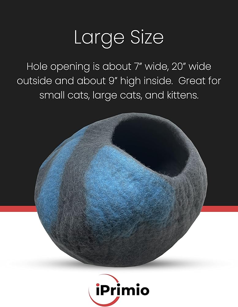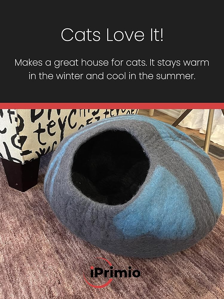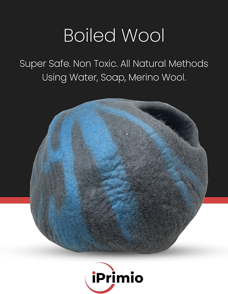 الصوف المغلي: باستخدام تقنية فريدة جدًا، فإن كهوف القطط الصوفية الجميلة هذه آمنة وغير سامة ولها شكل رائع. تم تصنيع سرير القطط القابل للغسل باستخدام طرق طبيعية بالكامل بواسطة iPrimio، ويمكن تنظيفه باستخدام الماء والصابون.