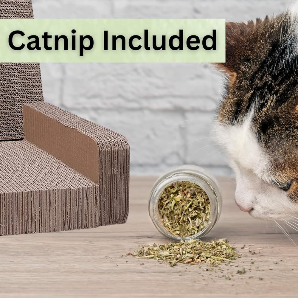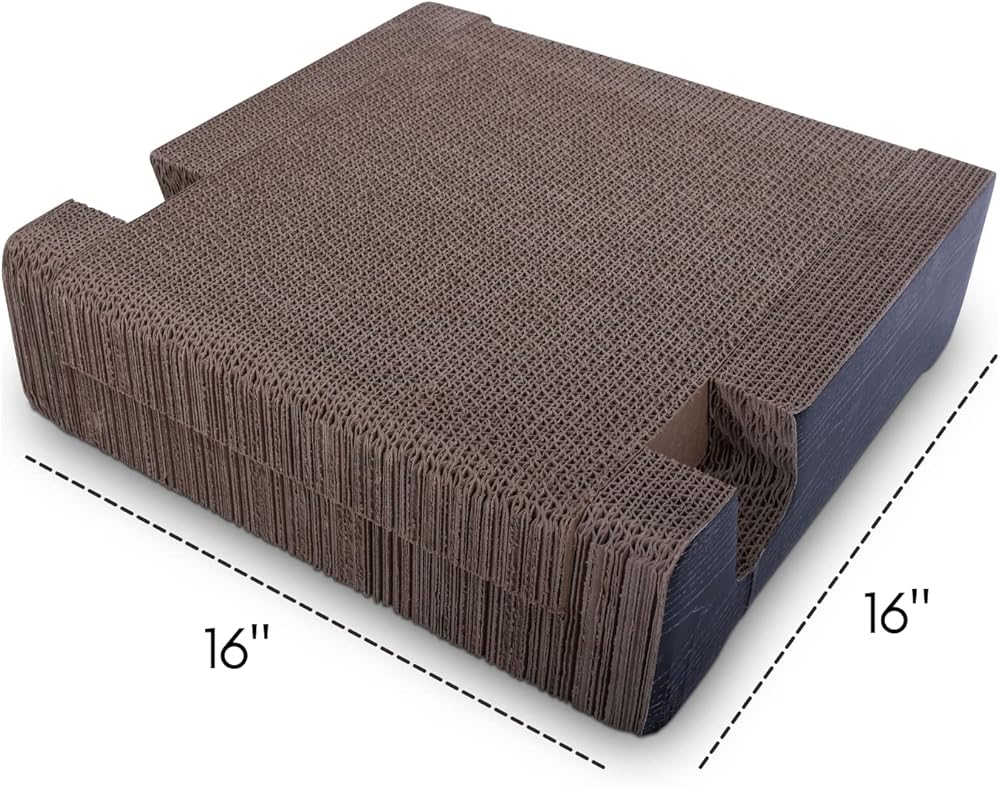 مقاس 16 انش × 16 انش يناسب معظم القطط. لقد قمنا بتضمين النعناع البري للقطط لتنجذب إلى أريكة خدش القطط المصنوعة من الورق المقوى وليس كرسيك المفضل!