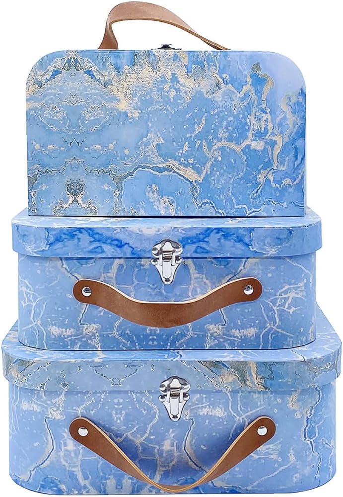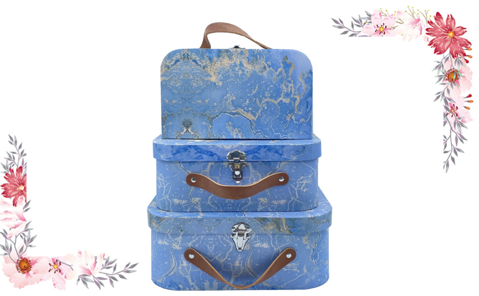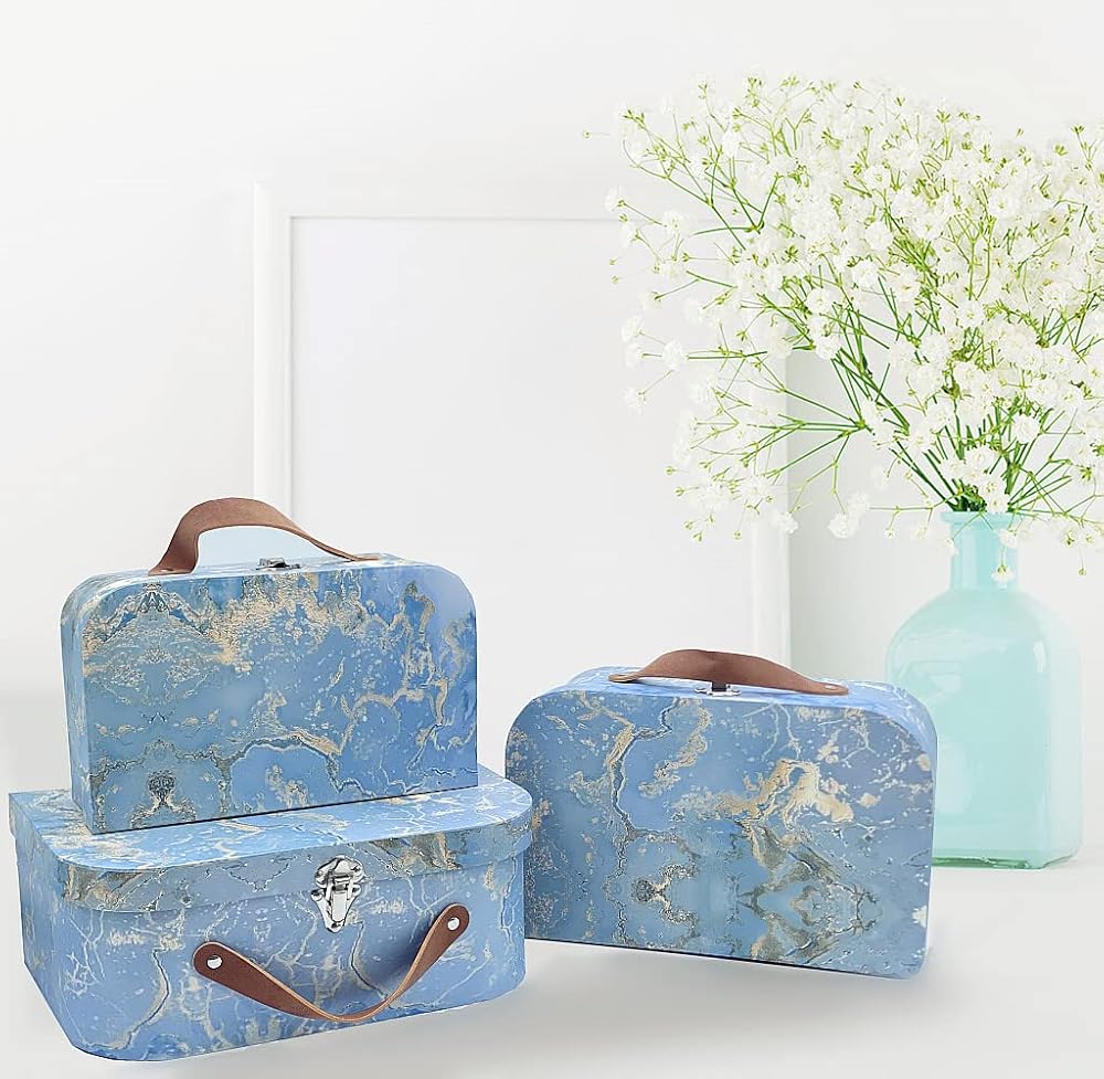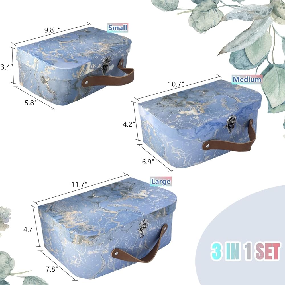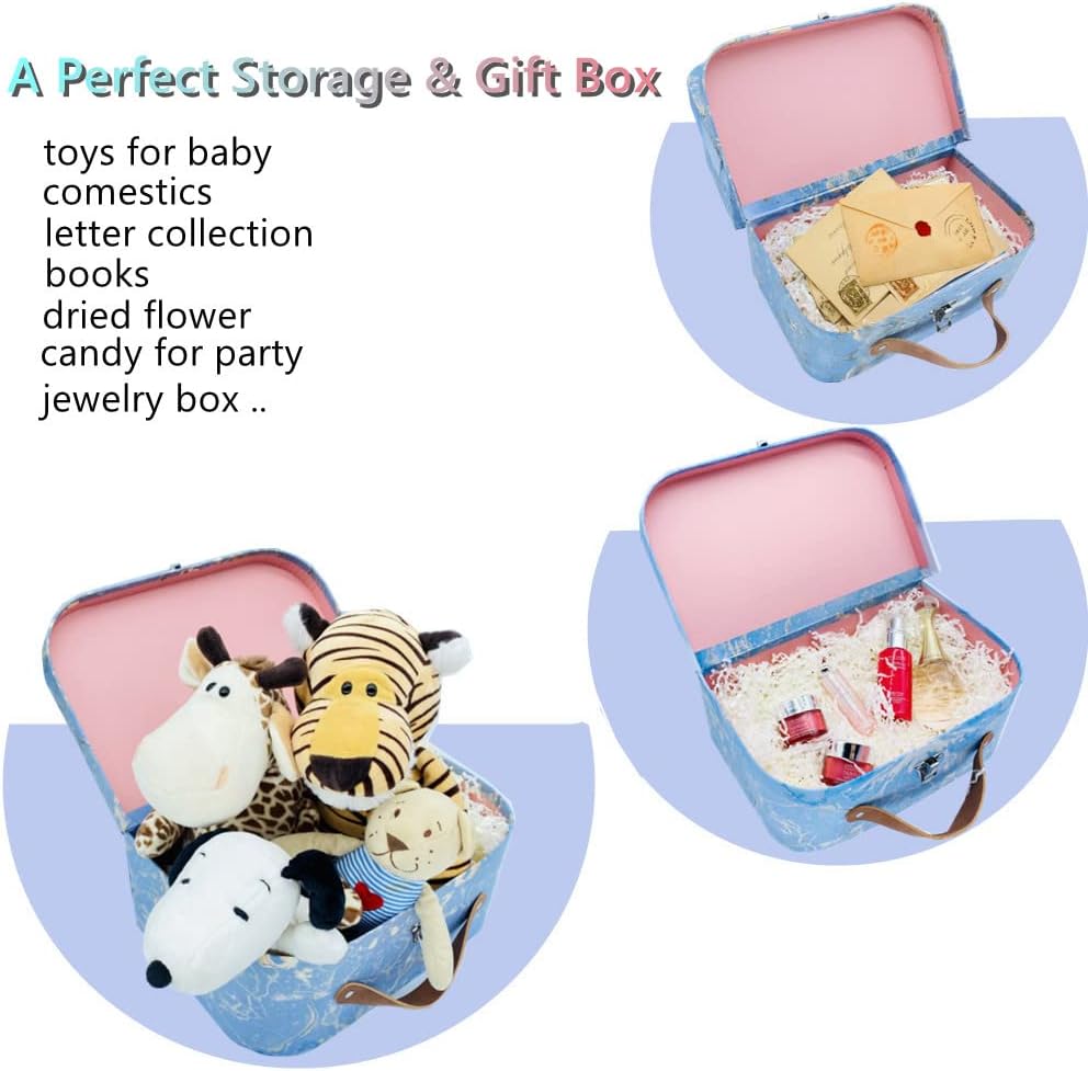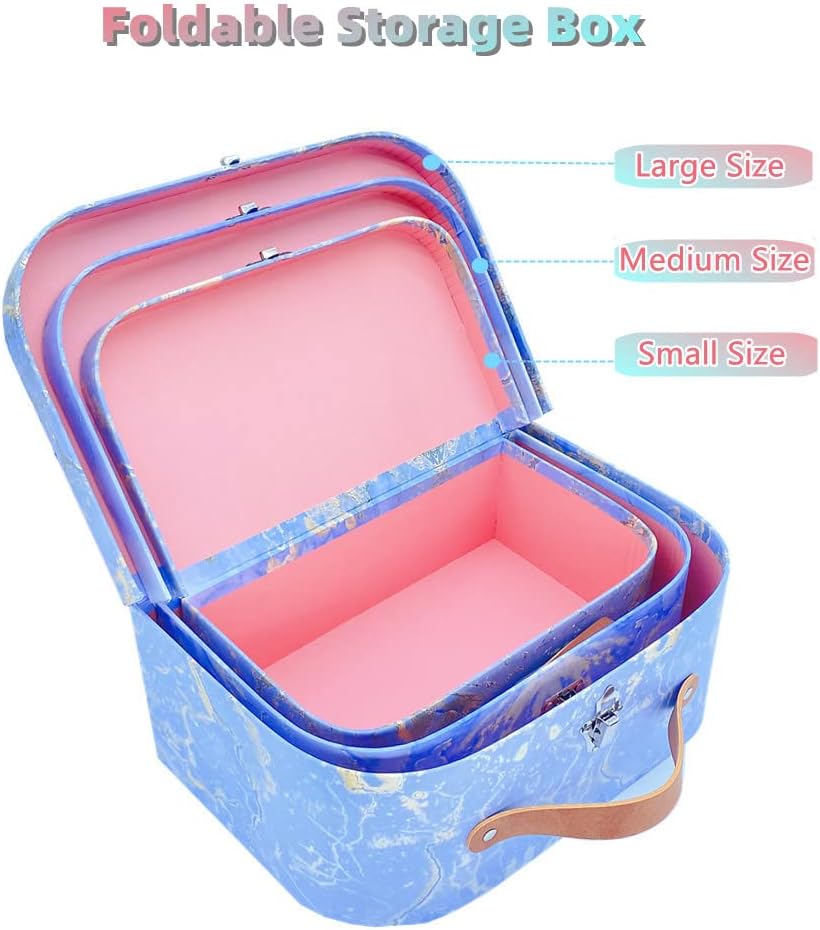 🎁صناديق تخزين مزخرفة، حقائب السفر المصنوعة من الورق المقوى المتداخلة هي الحل المثالي للتخزين لأي غرفة في المنزل. مناسب أيضًا كصندوق هدايا لحفلات الزفاف وأعياد الميلاد وحفلات استقبال المولود والذكرى السنوية ورأس السنة الجديدة والانتقال إلى منزل جديد والحفلات!