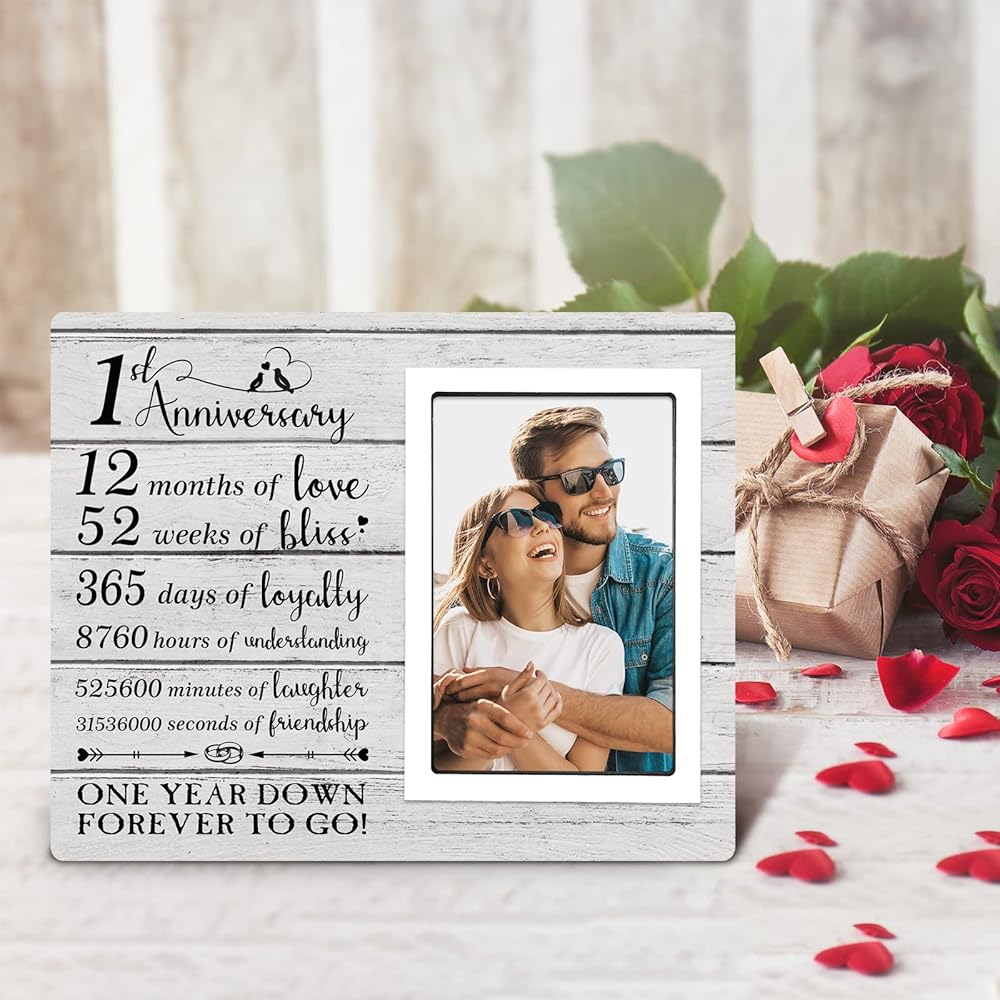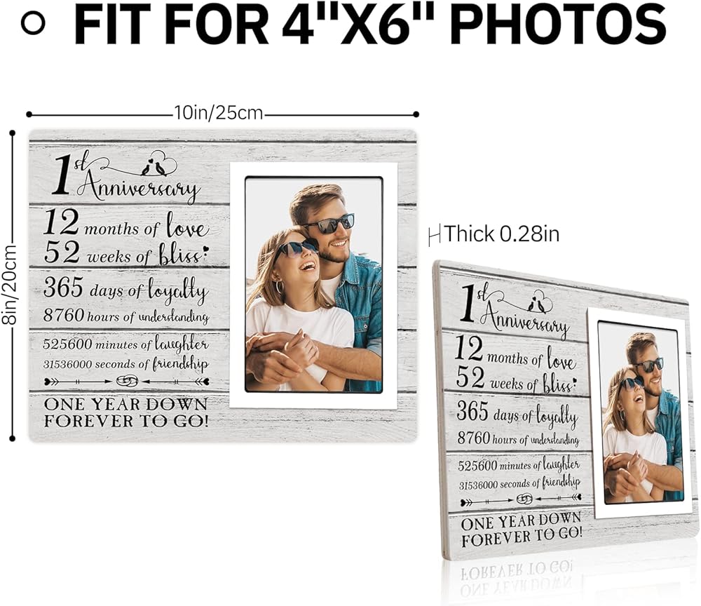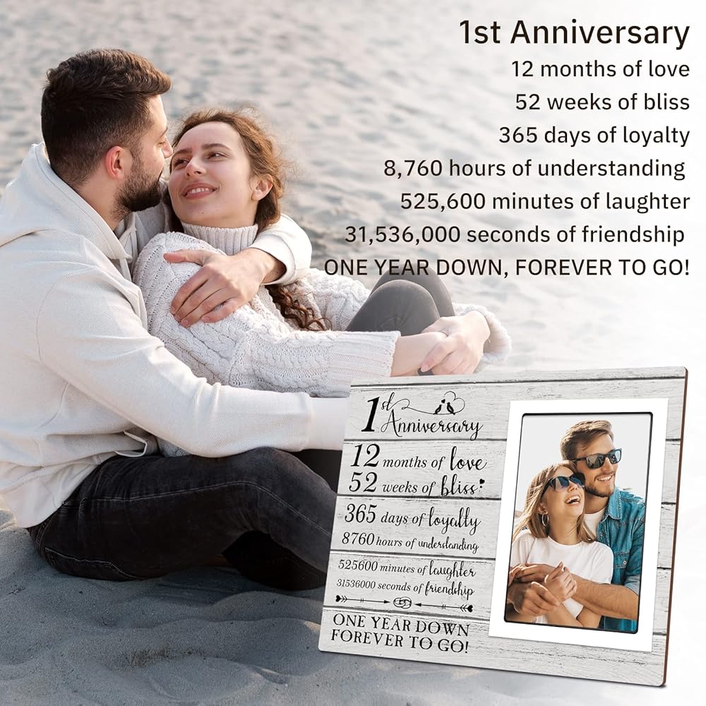 إطار صورة BeneCharm للذكرى السنوية الأولى - هدايا الزفاف للذكرى الأولى للزوجين، هدايا الزواج للذكرى السنوية له، لها، الزوج والزوجة - سنة واحدة من الزواج، تناسب الصورة مقاس 4 × 6 بوصات