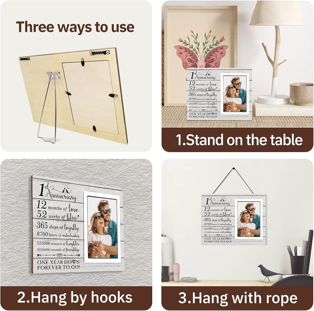 • 【ديكورات الذكرى السنوية】إطارات صور هدايا الذكرى السنوية الأولى للزفاف تستحق أن تكون ذات جودة عالية ومصممة بشكل جيد. تتميز بسحر ريفي وجمال طبيعي وستكون ديكورًا مثاليًا لغرفة المعيشة وغرفة النوم وغرفة الطعام والحمام وأي جزء من المنزل.