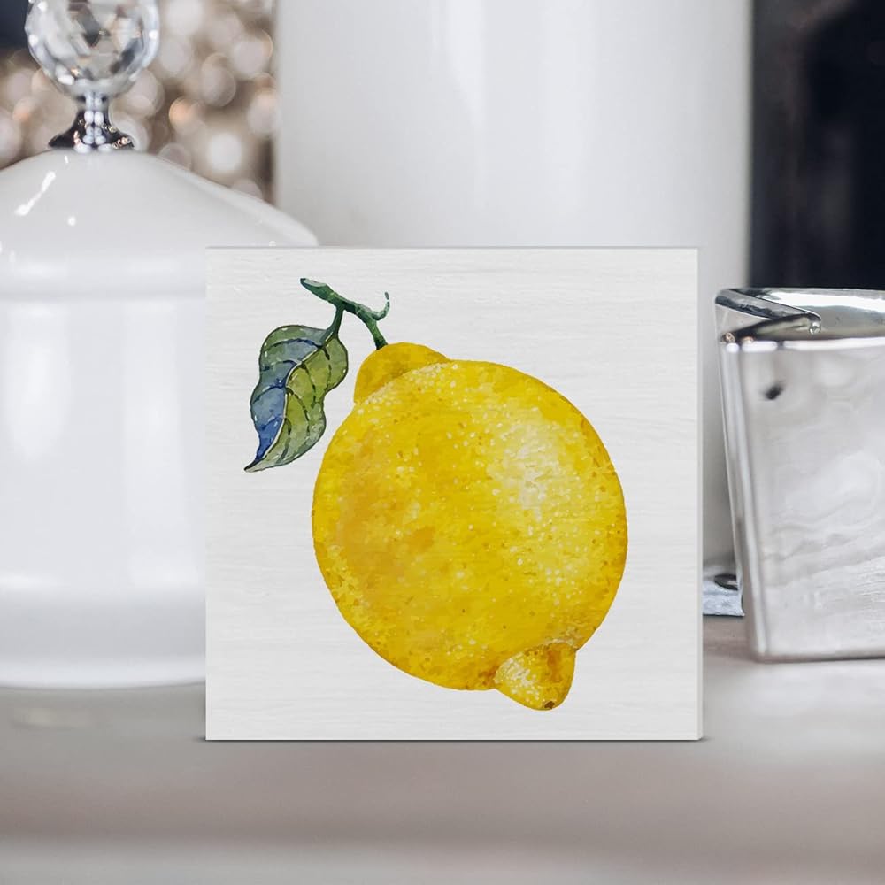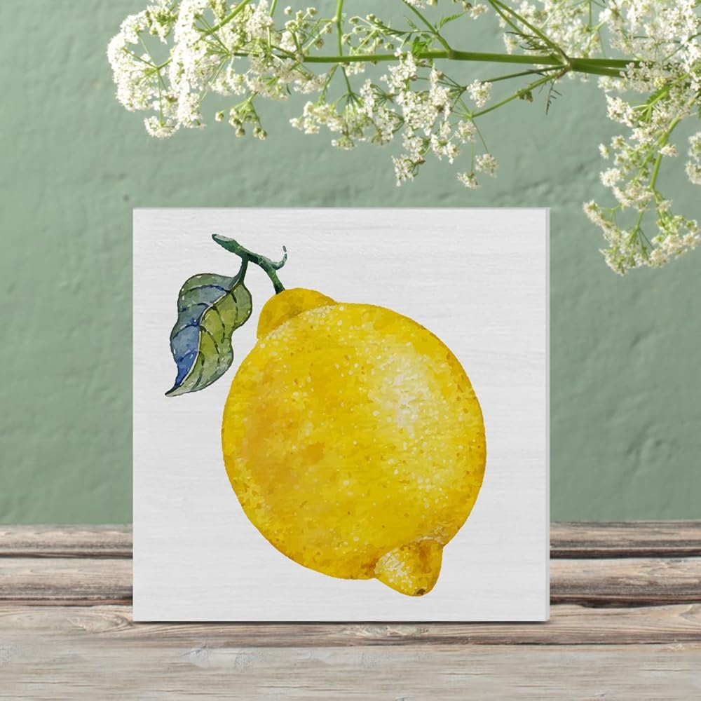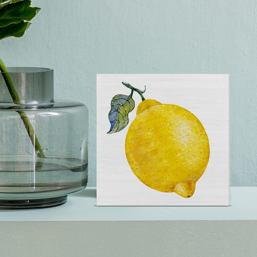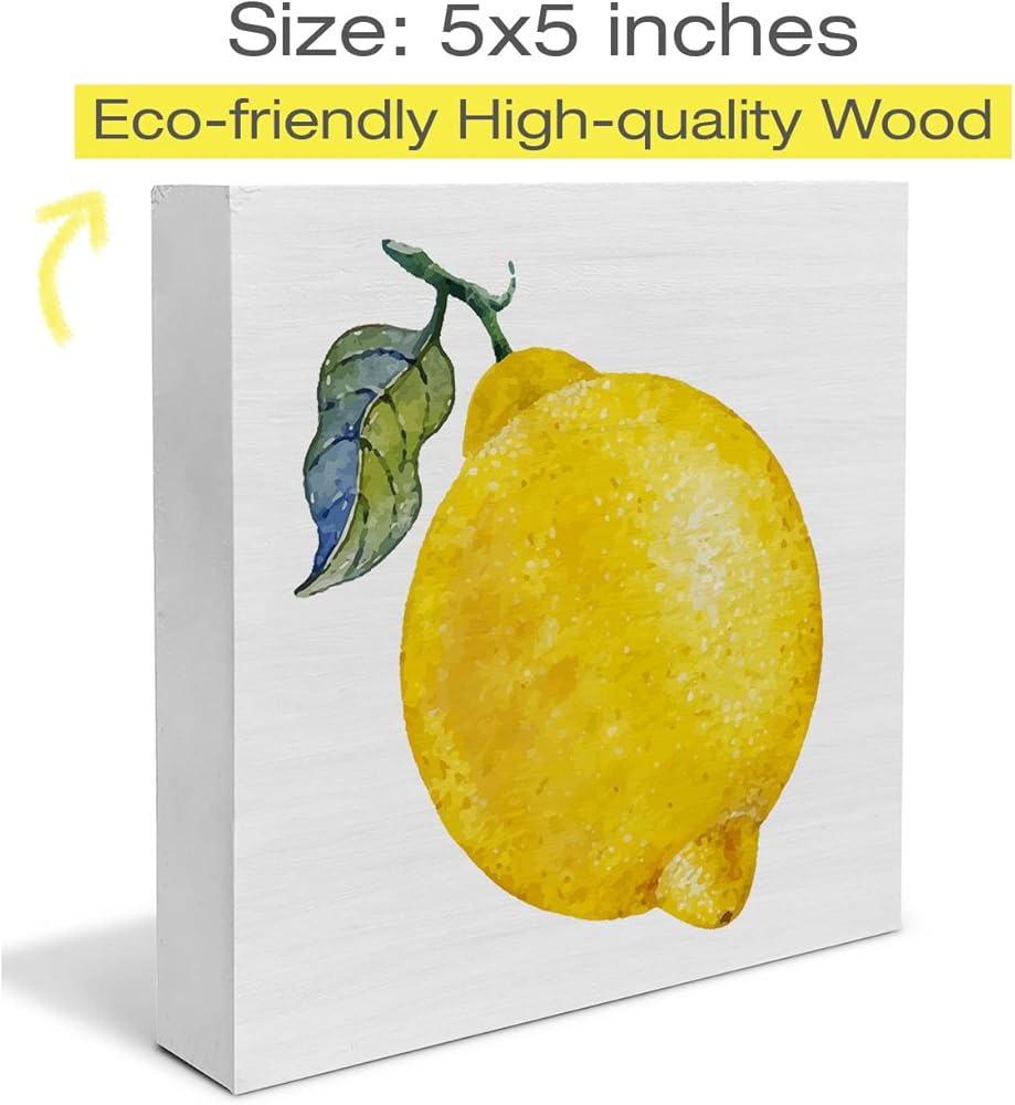 الرجعية الليمون صندوق خشبي علامة الليمون صندوق خشبي تسجيل الصيف الفن كتل مكتب ديكور علامات ريفي لرف الطاولة جدار ديكور المنزل 5 × 5 بوصة