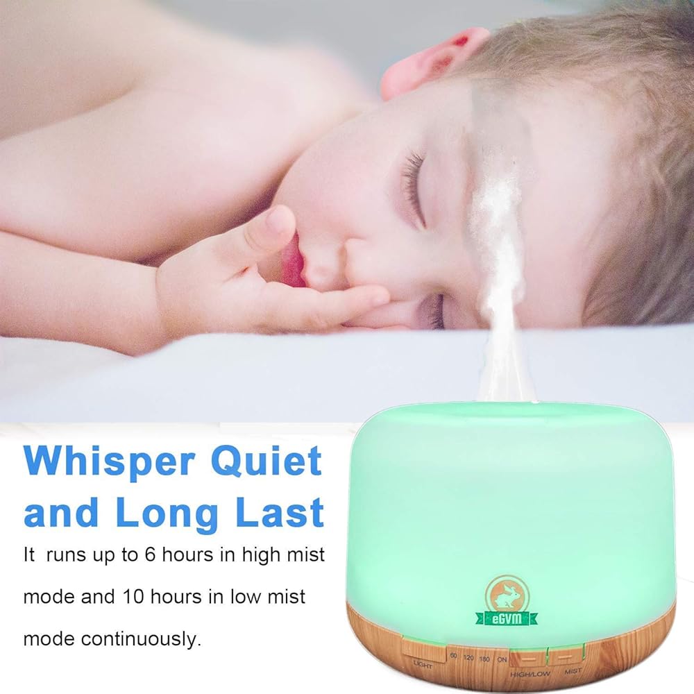 موزع روائح عطرية لطيف للاطفال سعة 500 مل، مرطب هواء هادئ لغرفة النوم مع جهاز تحكم عن بعد ومؤقت 4 اوضاع واضاءة LED بـ7 الوان وخاصية ايقاف التشغيل التلقائي عند نفاذ الماء