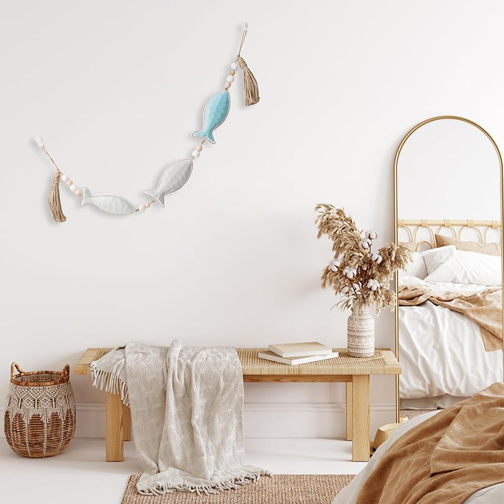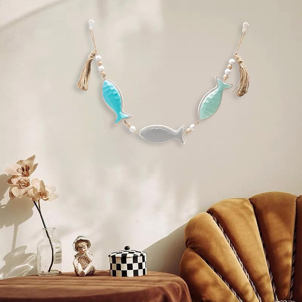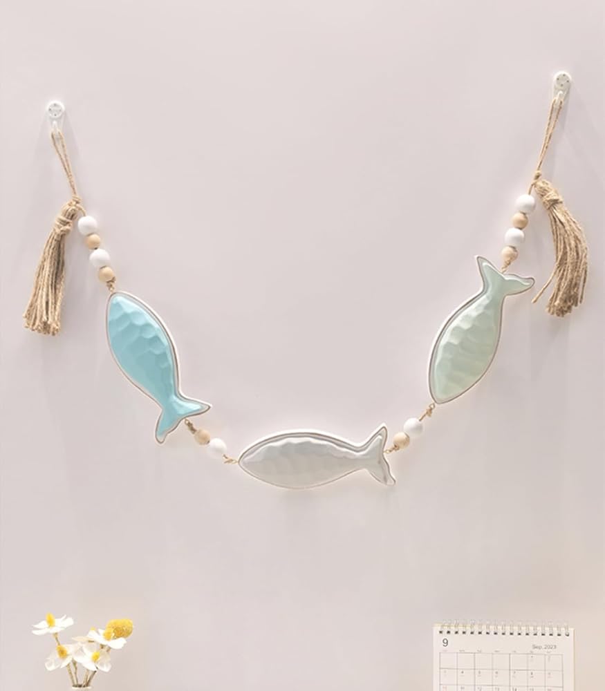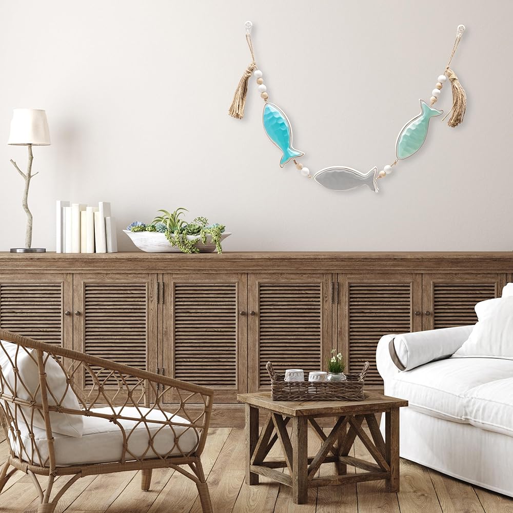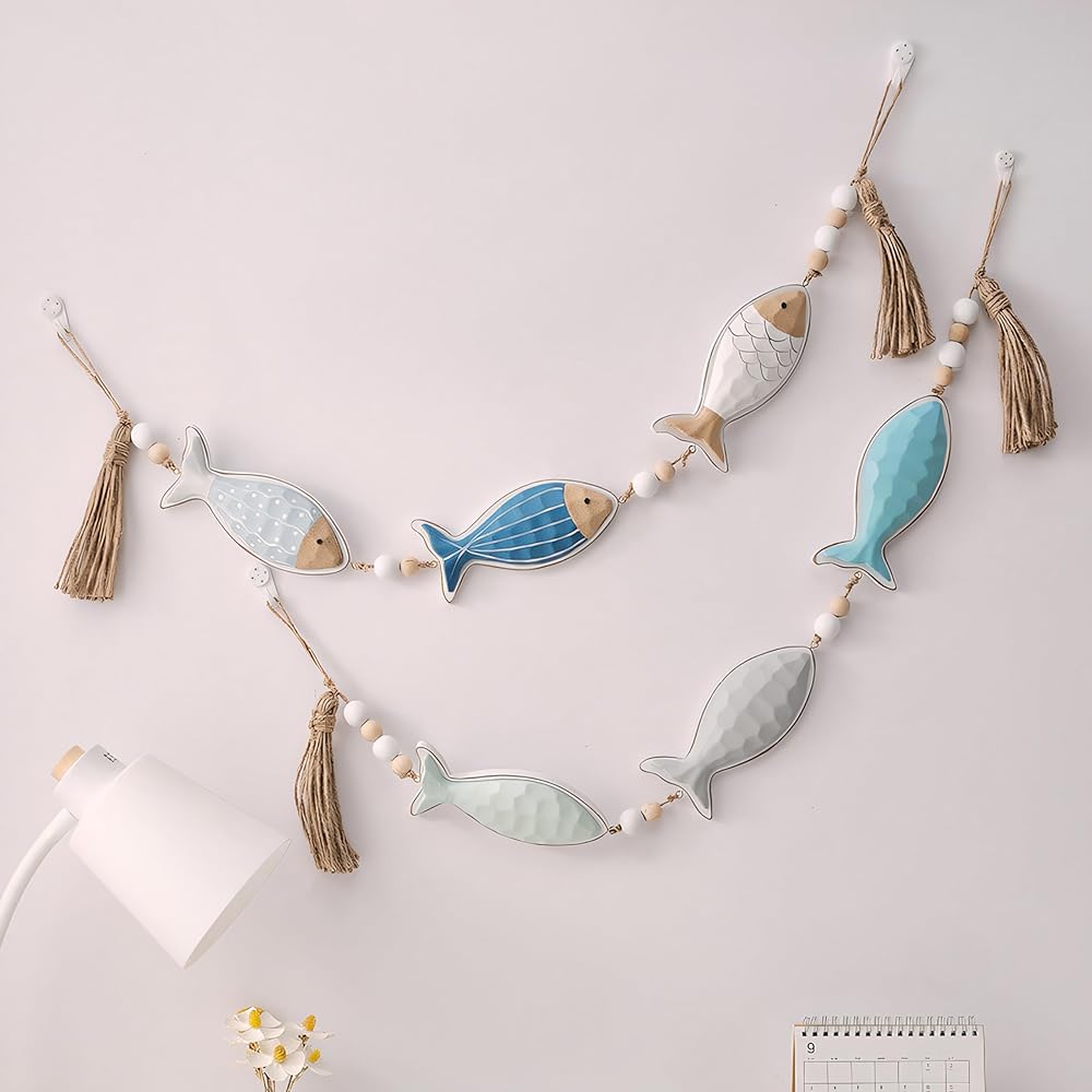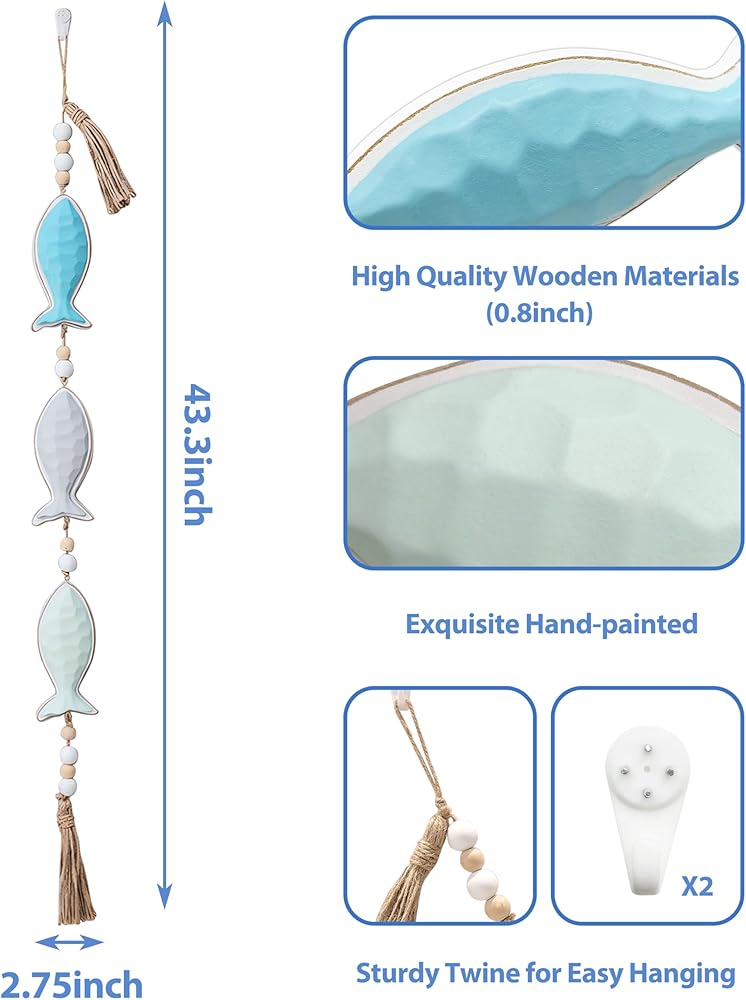 【تصميم رائع ومميز】- يتميز هذا الديكور البحري بتصميم مثير للاهتمام ومصنوع بدقة. تتميز كل خصلة بثلاثة أسماك خشبية، كل منها متميزة في اللون والشكل، مما يوفر مظهرًا حيويًا ومتنوعًا. الألوان الكاملة مرسومة يدويًا وطبيعية بشكل منعش وجذابة بصريًا.