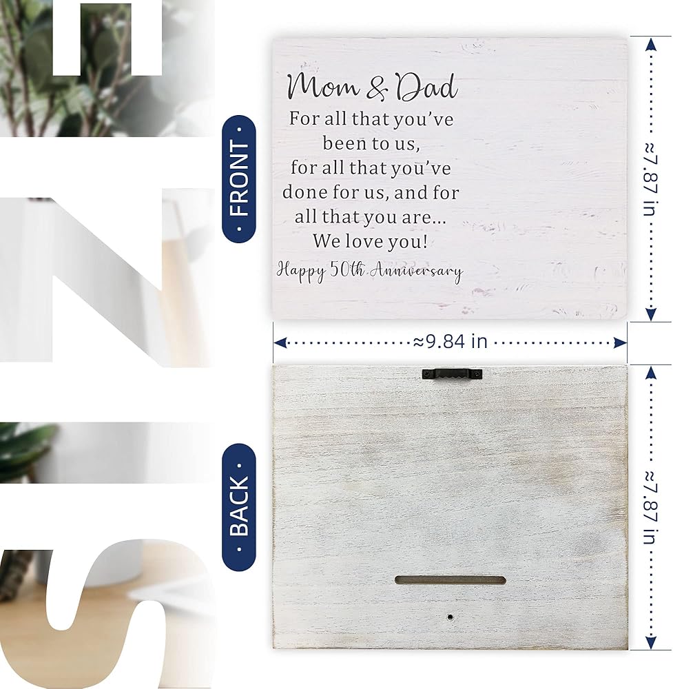 • هدايا الذكرى الخمسين للآباء والأمهات: هدية ذكرى سنوية مدروسة لزواج الوالدين لمدة 50 عامًا، الهدية المثالية للأم والأب الذكرى الخمسين للزفاف هدية الذكرى الخمسين للآباء من ابنة/الابن، كما يمكن أن تكون هدية ذات مغزى للزوجين الذين يتزوجون لمدة 50 عاماً من تذكار الزفاف.