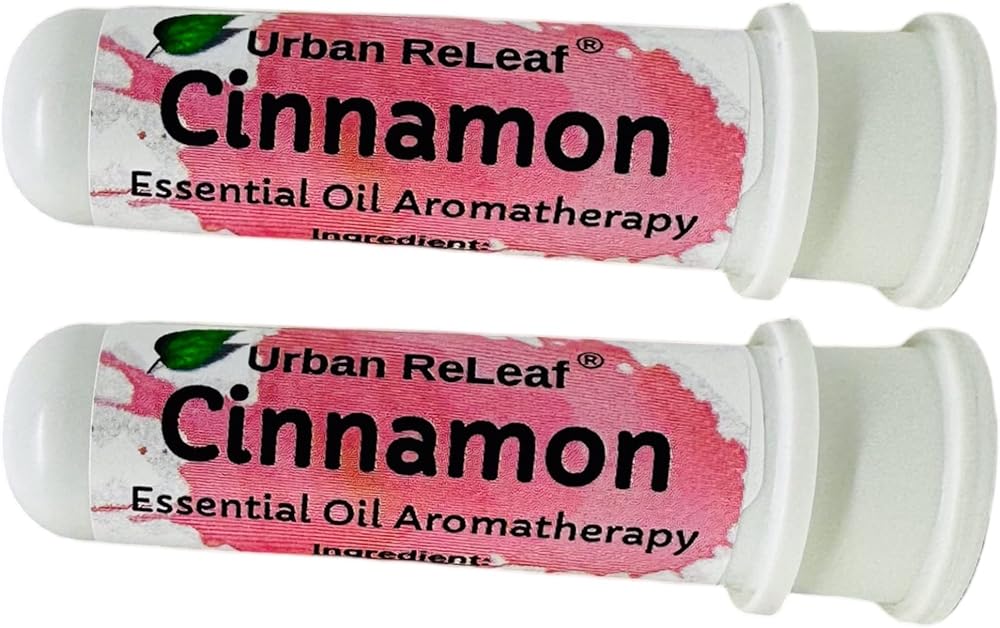 Urban ReLeaf Cinnamon Essential Oil Aromatherapy Nasal Inhalers, SET of 2 — Pure Undiluted Spicy Cinnamon Oil, Easy Open Snap Top. Made in USA. Alcohol-free. No mess. Pocket size.
