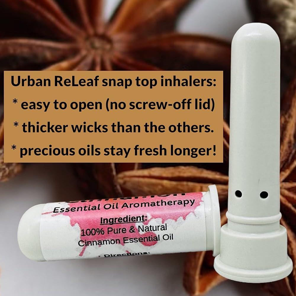 * INTRODUCING: The best inhalers you've ever used! Pure, undiluted, and 100% natural — Urban ReLeaf Cinnamon inhalers are made with 100% pure essential oil. No additives & alcohol-free.