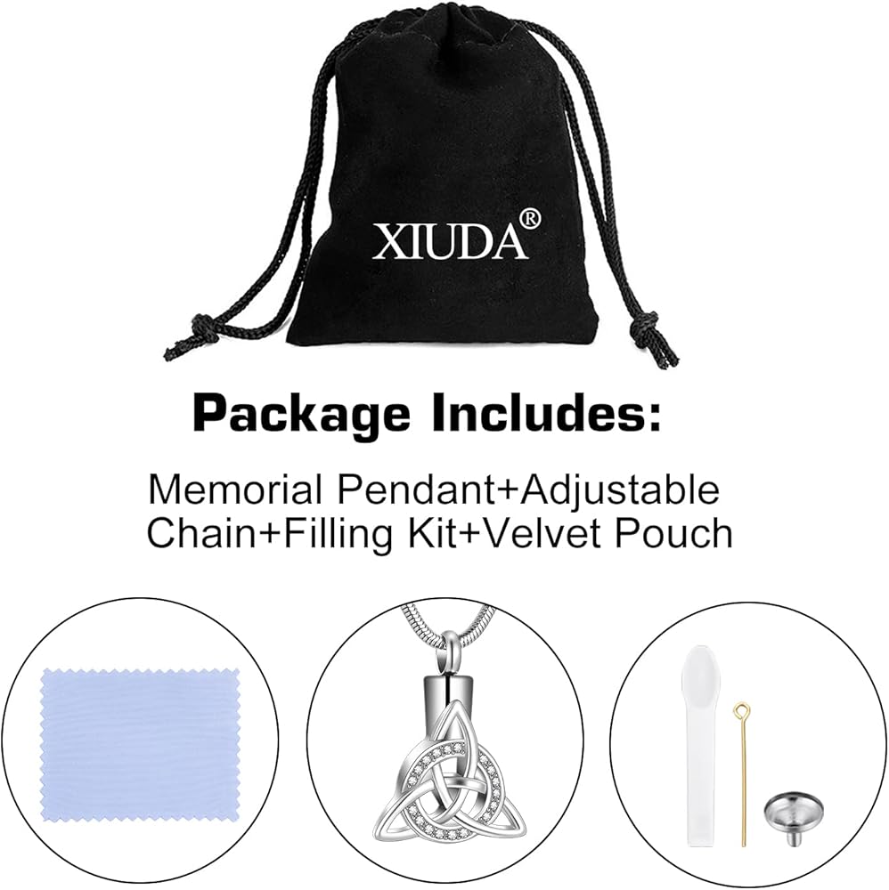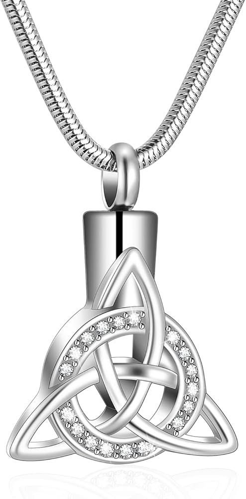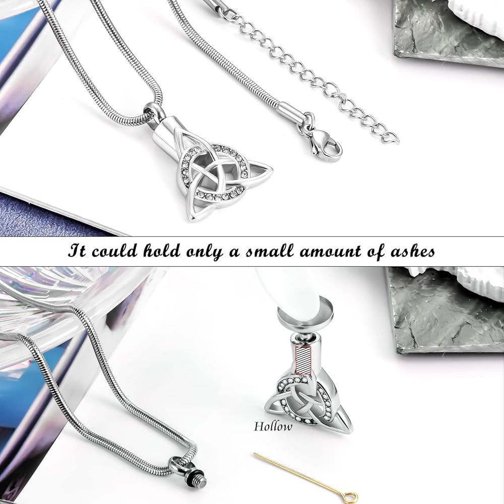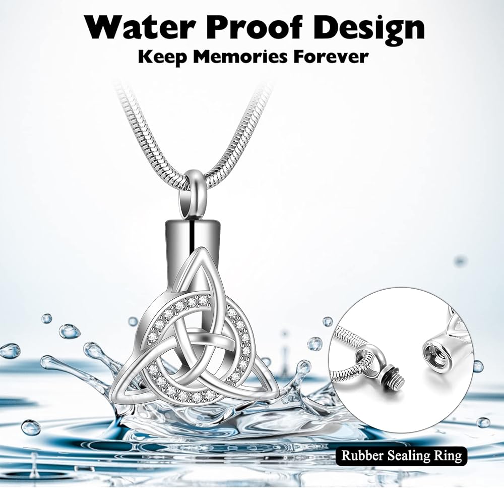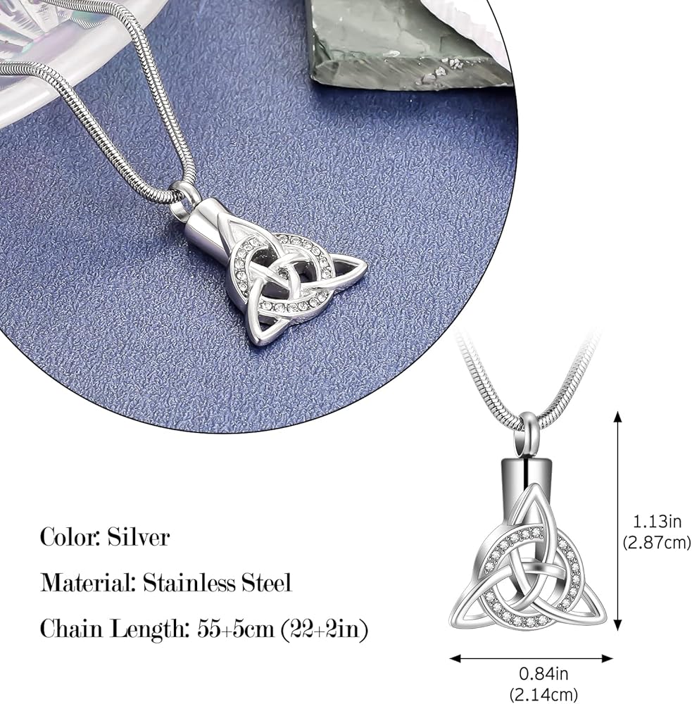 【قلادة جرة للرماد البشري】هذه القلادة التذكارية المصممة على شكل عقدة سلتيكية ثلاثية تعبر عن الحب والافتقاد والحداد والاعتزاز. إن فقدان أحد أحبائك هو أكثر شيء ينكسر القلب، ونأمل أن تمنحك هذه المجوهرات بعض الراحة وتجعلك تشعر أنه لا يزال بجانبك.