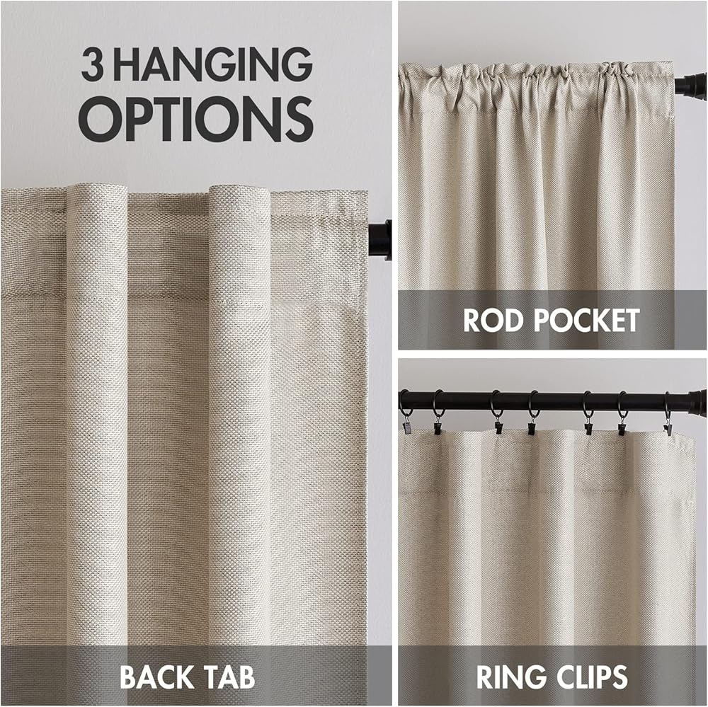 【خيارات التعليق】: تتميز كل لوحة ستارة بتصميم علوي 2 في 1: جيب قضيب وعروة خلفية. مع فتحة جيب بقطر داخلي 7.62 سم، تناسب معظم القضبان القياسية. ويمكن أيضًا تعليق الستائر بحلقات المشبك. 3 طرق لتلبية احتياجاتك المختلفة.