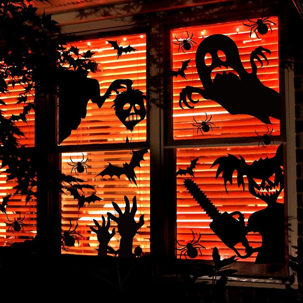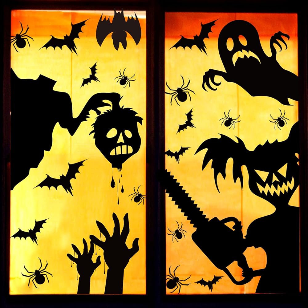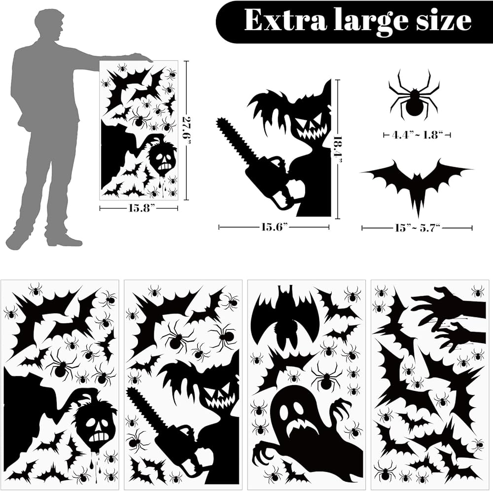 تشمل العبوة: 4 أوراق كبيرة للتعليق بالنوافذ في جميع المناسبات. جو احتفالي، مزاج سعيد: ملصقات نوافذ الهالوين هذه ستجعل نوافذك تبدو احتفالية ومليئة بالحيوية في عيد الهالوين هذا. نأمل أن تستمتع بوقتك لتزيين نوافذك مع عائلتك وأصدقائك.