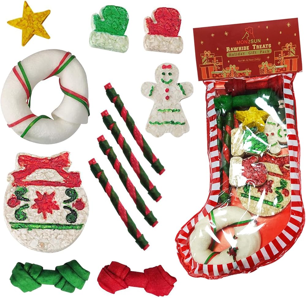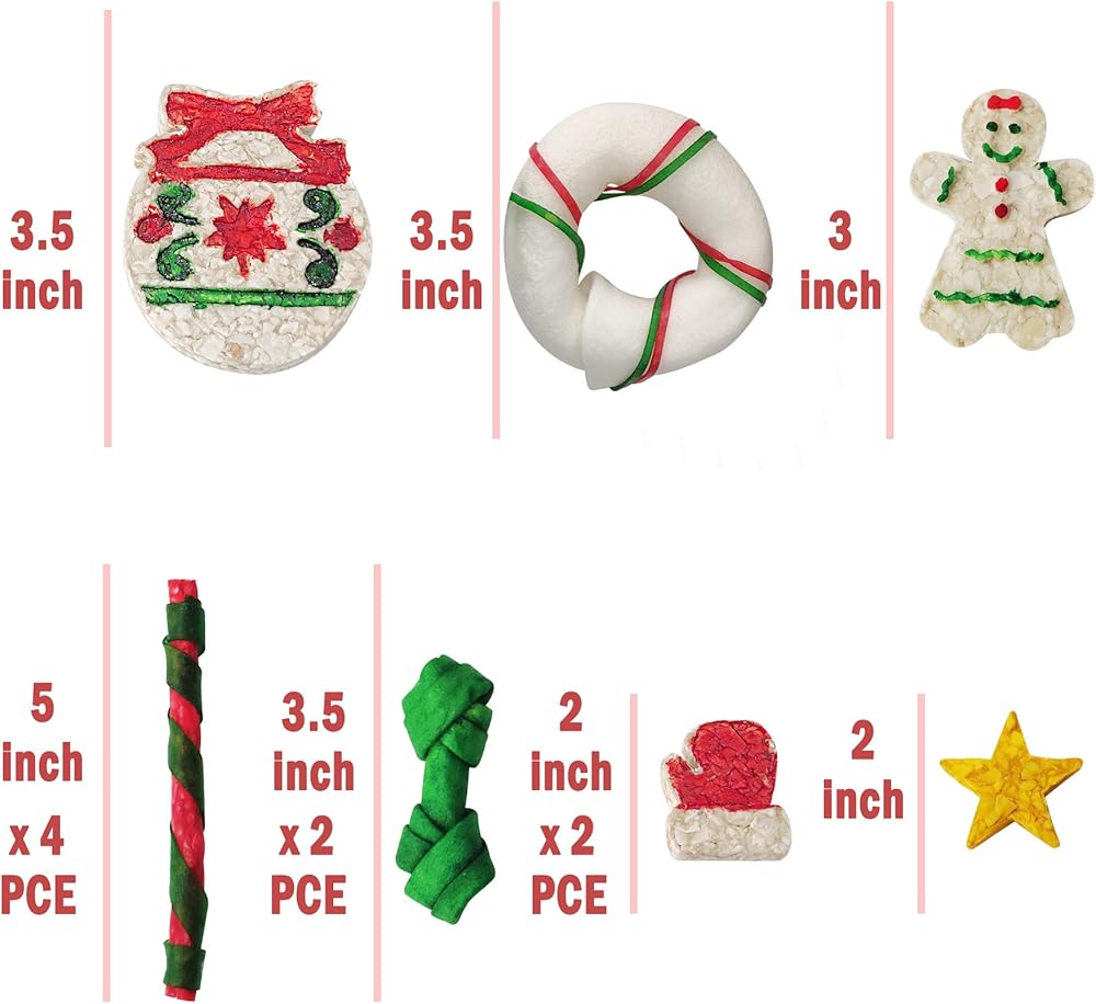 عيد الميلاد الكلب الجلود الخام مونشي جلجل بيل 1 جهاز كمبيوتر. دونات 1 قطعة. مانشي زنجبيل مان 1 قطعة. العصي الجلود الخام 4 قطع. عظم جلد خام 2 قطعة. قفاز مونشي 2 قطعة. منشي ستار 1 قطعة