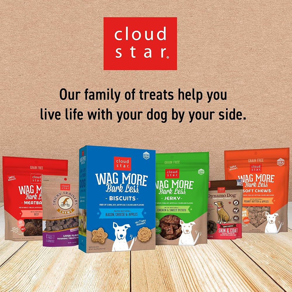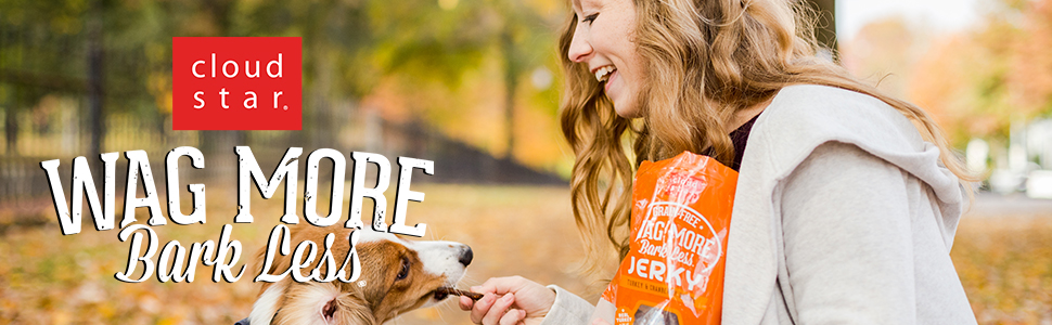 Cloud Star Wag More Bark Less Chicken and Sweet Potato Recipe Jerky offers meat and more, with delicious chunks of sweet potato for added flavor, texture, and nutrients. Made just how you'd make it, our jerky is dried in small batches, using home-style recipes and high-quality USA-sourced chicken.