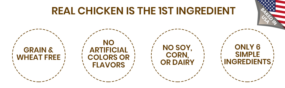 Free of wheat, corn, soy, artificial flavors and colors
