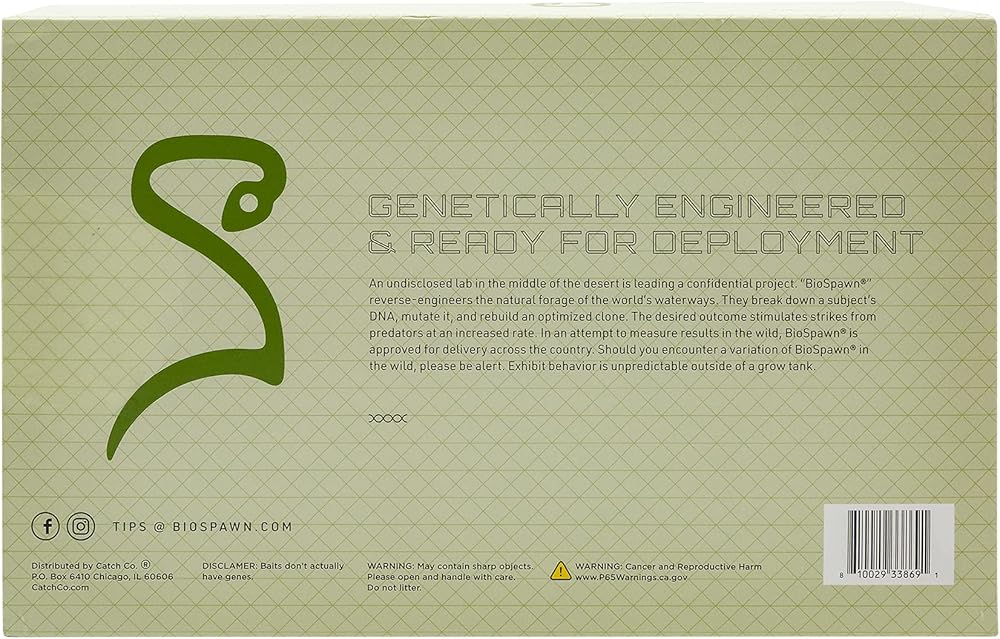 تم تصميم مجموعة الصيد من بايوسباون جينيًا وجاهزة للنشر من مختبر غير مقفل في منتصف الصحراء. يهندس فريق بايوسباون العلف الطبيعي للممرات المائية في العالم. إنهم يحطرون الحمض النووي للموضوع، ويحومون ذلك ويعيد بناء مستنساخ محسّن. النتيجة المرجوة تحفز الضربات من الحيوانات المفترسة بمعدل زيادة. في محاولة قياس النتائج في البرية، تم اعتماد مجموعة الصيد بيو سباون هذه للتسليم في جميع أنحاء البلاد. إذا واجهت تنوعاً في بايوسباون في البرية، يرجى الانتباه لأنها ستعرض سلوك غير متوقع خارج خزان النمو. تتضمن مجموعة صيد السمك هذه لعبة بيوسباون الخشخيشة وأكسوسويم وإكسبوود وإكس ريبون وفيلاكراو وبلازمايتيل!