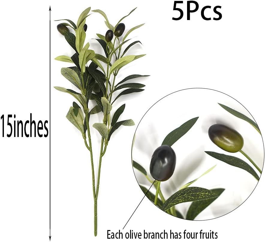 Product Quantity and Size: Each steam of olive branches is about 15 inches tall. Each order includes 5 olive branches.