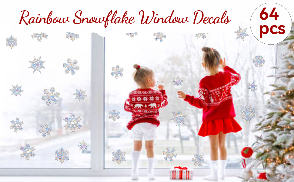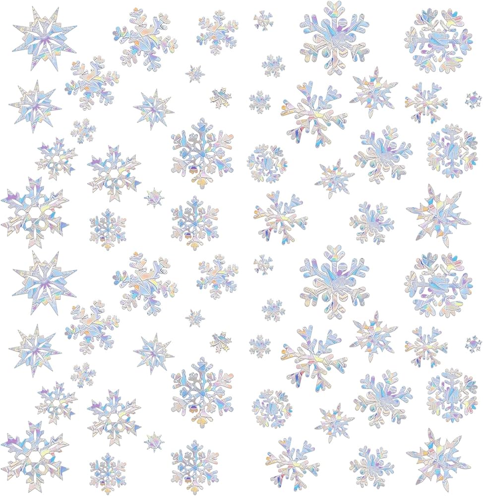 64 قطعة من ملصقات النوافذ على شكل ندفة الثلج بألوان قوس قزح غير لاصقة قابلة لاعادة الاستخدام، ملصقات نافذة بتصميم ندفة الثلج في الشتاء، ملصقات نافذة مضادة للتصادم لإنقاذ الطيور من تصادم النوافذ